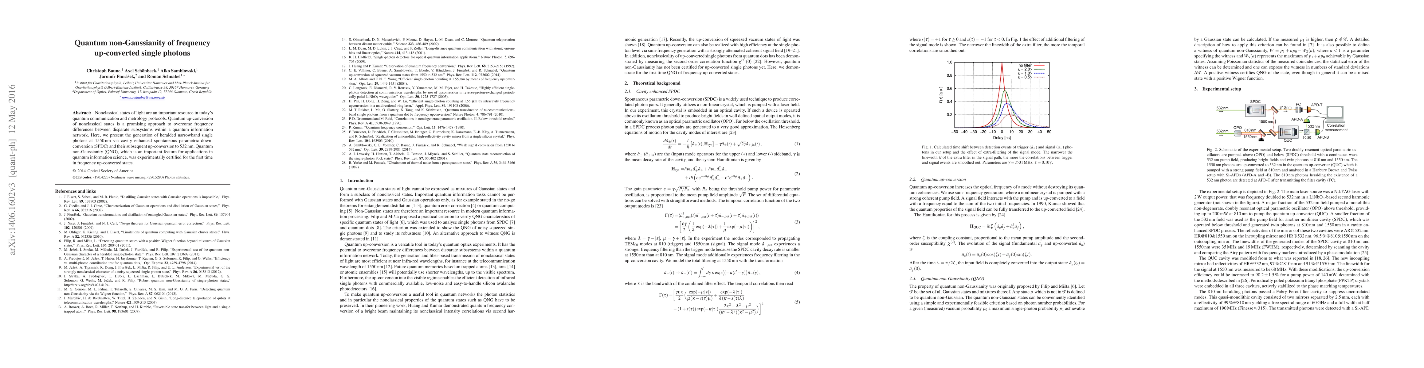 This paper reports the generation of narrowband single photons via cavity-enhanced SPDC and their up-conversion, demonstrating quantum non-Gaussianity for the first time in frequency up-converted states, which is crucial for quantum information science applications.