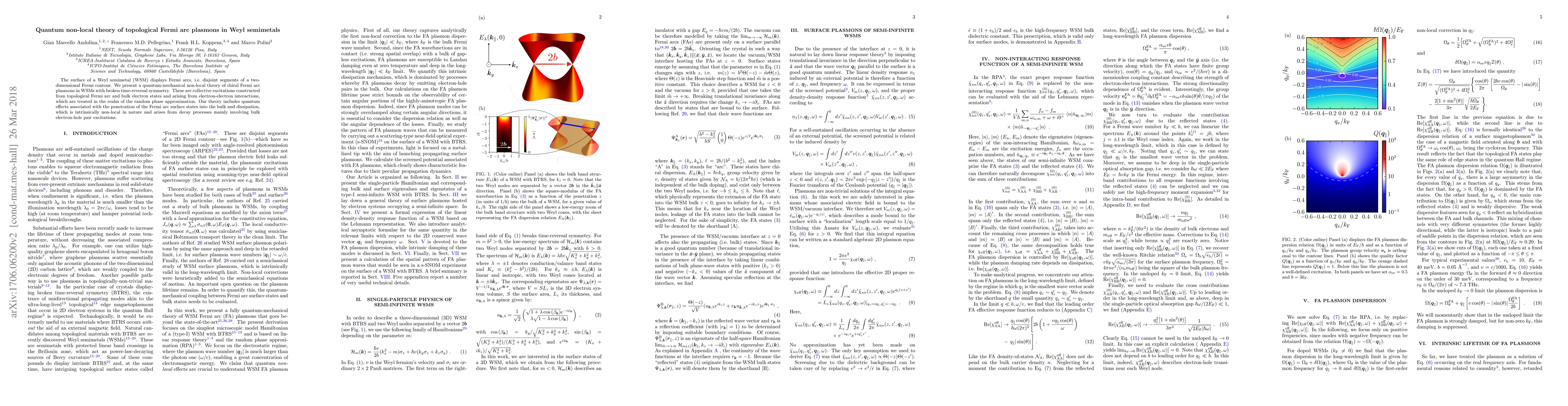 The paper introduces a quantum non-local theory for topological Fermi arc plasmons in Weyl semimetals, deriving an analytical formula for the plasmon dispersion relation and including non-local corrections to study damping rates.