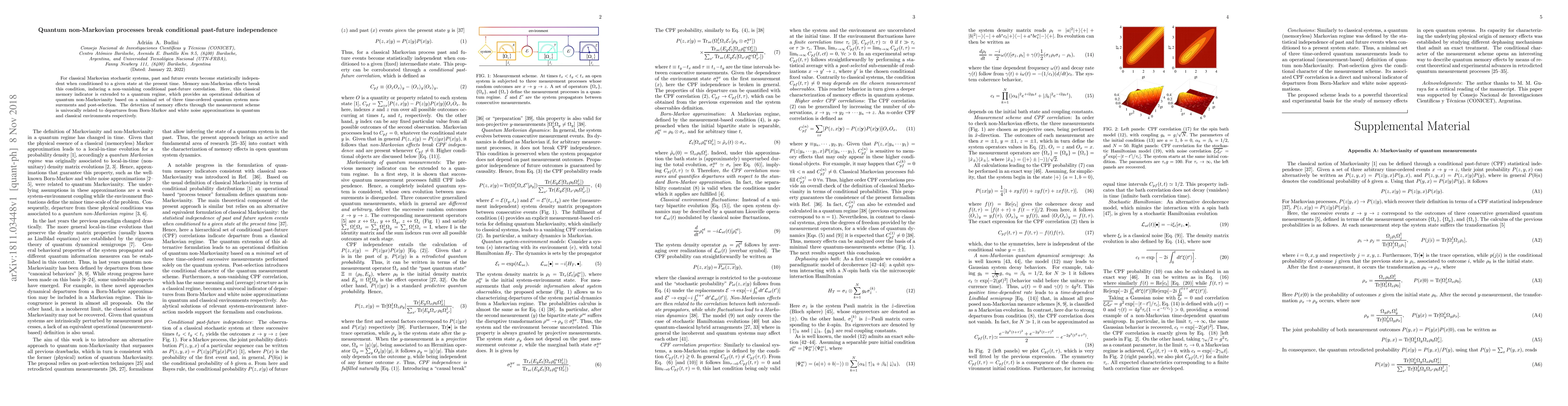 This paper introduces a quantum operational definition of non-Markovianity based on three time-ordered measurements, showing that quantum systems can exhibit non-vanishing conditional past-future correlations, breaking classical independence assumptions. The detection method correlates with deviations from Born-Markov and white noise approximations in quantum environments.