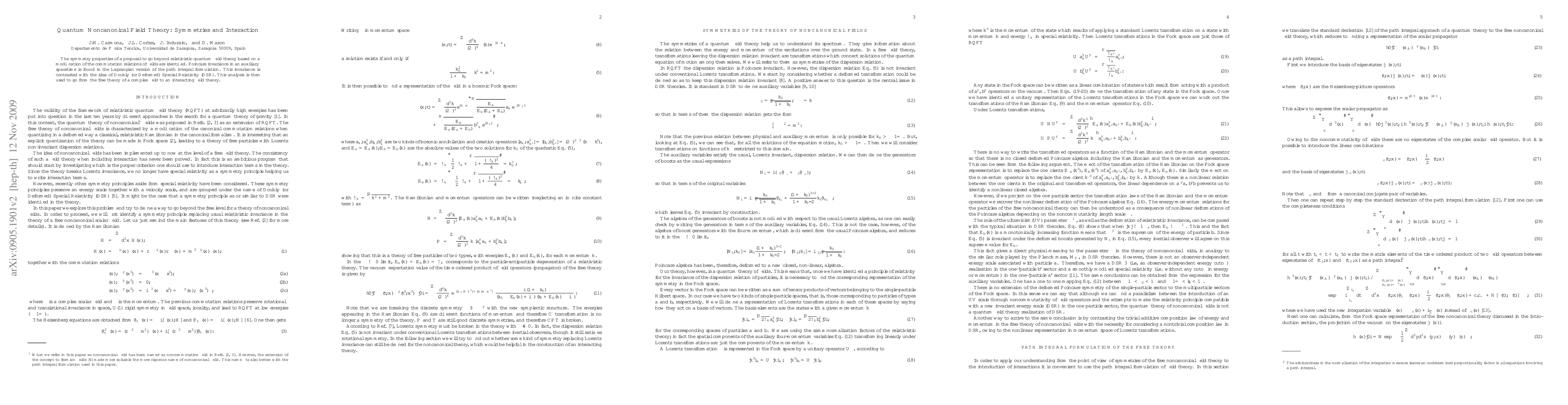 The symmetry properties of a proposal to go beyond relativistic quantum field theory based on a modification of the commutation relations of fields are identified. Poincar\'e invariance in an auxiliary spacetime is found in the Lagrangian version of the path integral formulation. This invariance is contrasted with the idea of Doubly (or Deformed) Special Relativity (DSR). This analysis is then used to go from the free theory of a complex field to an interacting field theory.