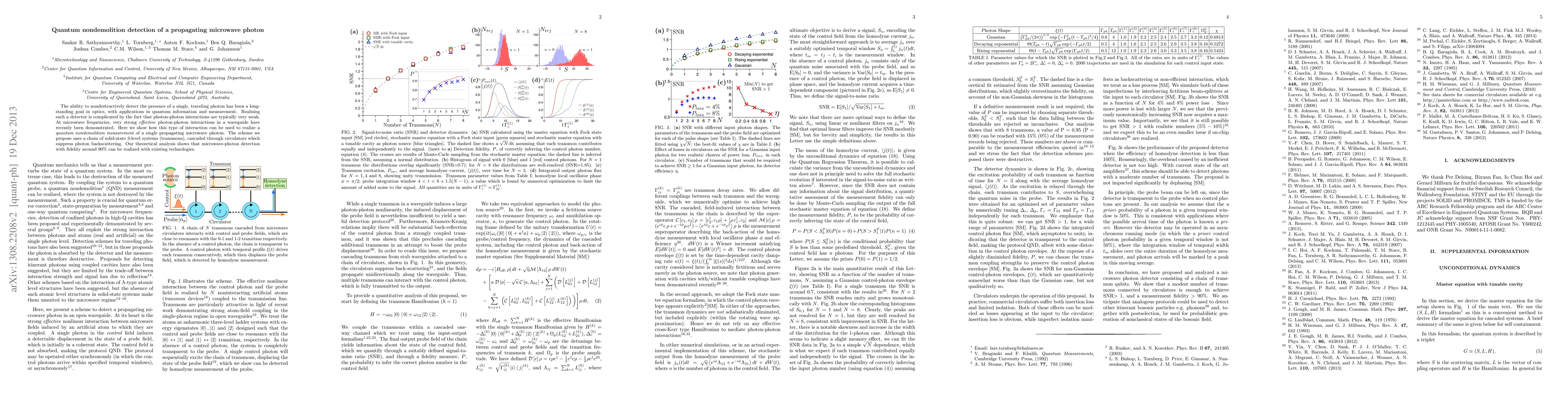 This paper presents a method for quantum nondemolition detection of a single propagating microwave photon using strong effective photon-photon interactions in a waveguide. The proposed scheme utilizes a chain of solid-state 3-level systems (transmons) and circulators to achieve detection fidelity around 90% with current technology.