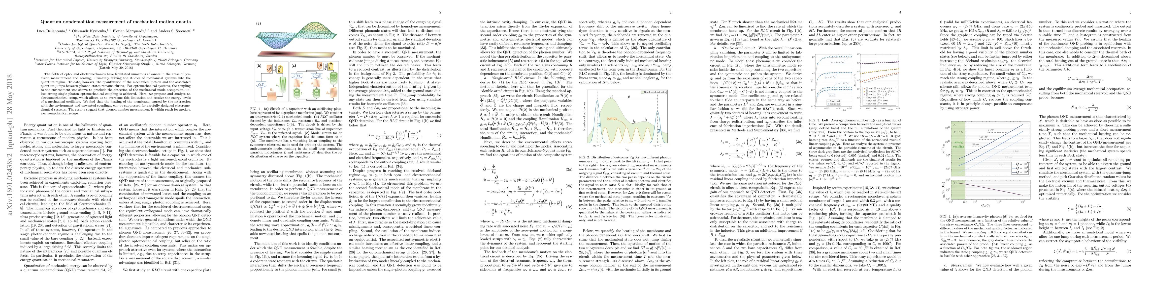 This paper proposes an electromechanical setup to achieve quantum nondemolition measurement of mechanical motion quanta, overcoming environmental coupling limitations. It demonstrates that by carefully designing the system, the heating of the membrane can be suppressed, making phonon number measurement feasible.