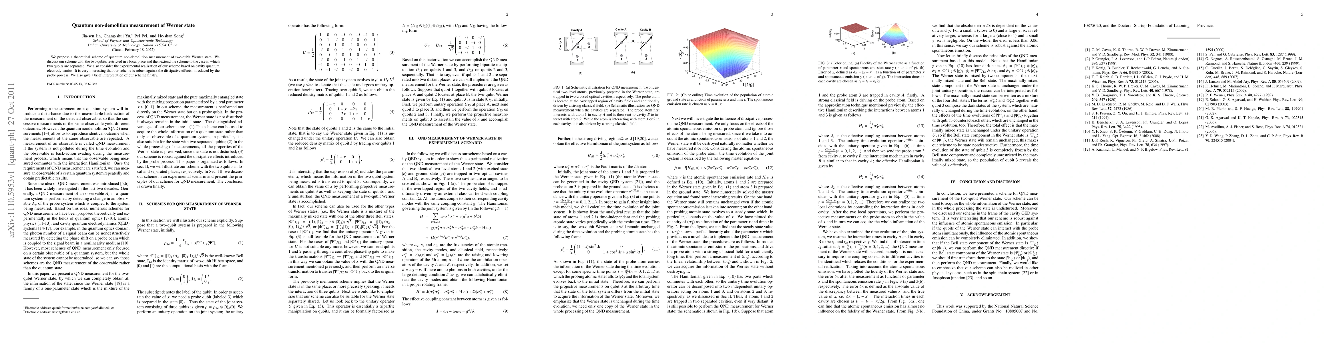 Researchers propose a theoretical scheme to measure the Werner state using quantum nondemolition measurement, which is robust against dissipative effects and can be experimentally realized through cavity quantum electrodynamics.
