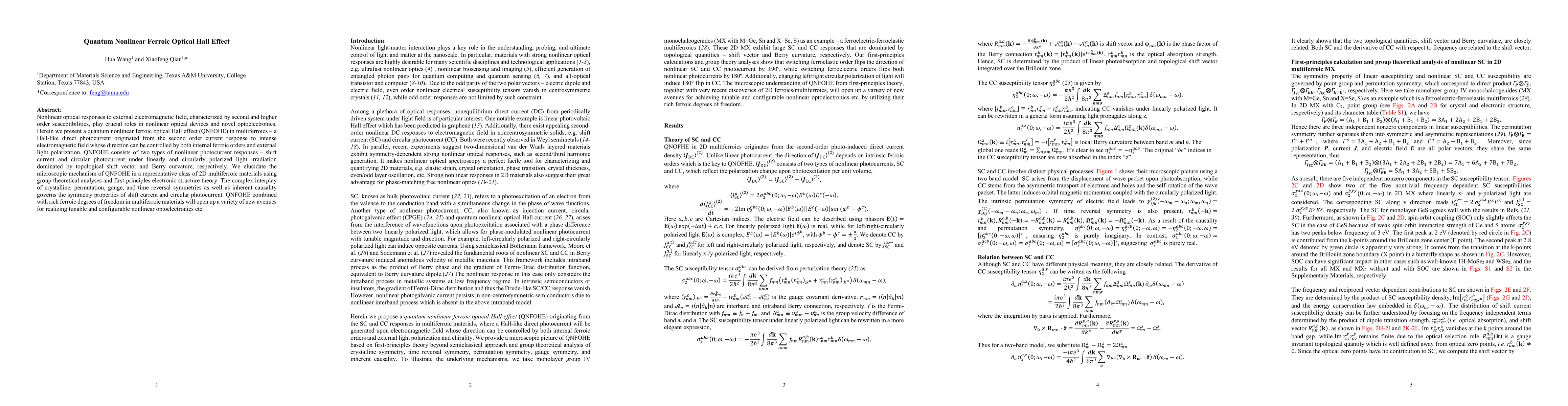 Researchers discovered a new phenomenon called Quantum Nonlinear Ferroic Optical Hall Effect in multiferroics, which generates a direct photocurrent from an external electromagnetic field. This effect could lead to the development of tunable nonlinear optoelectronics with various applications.