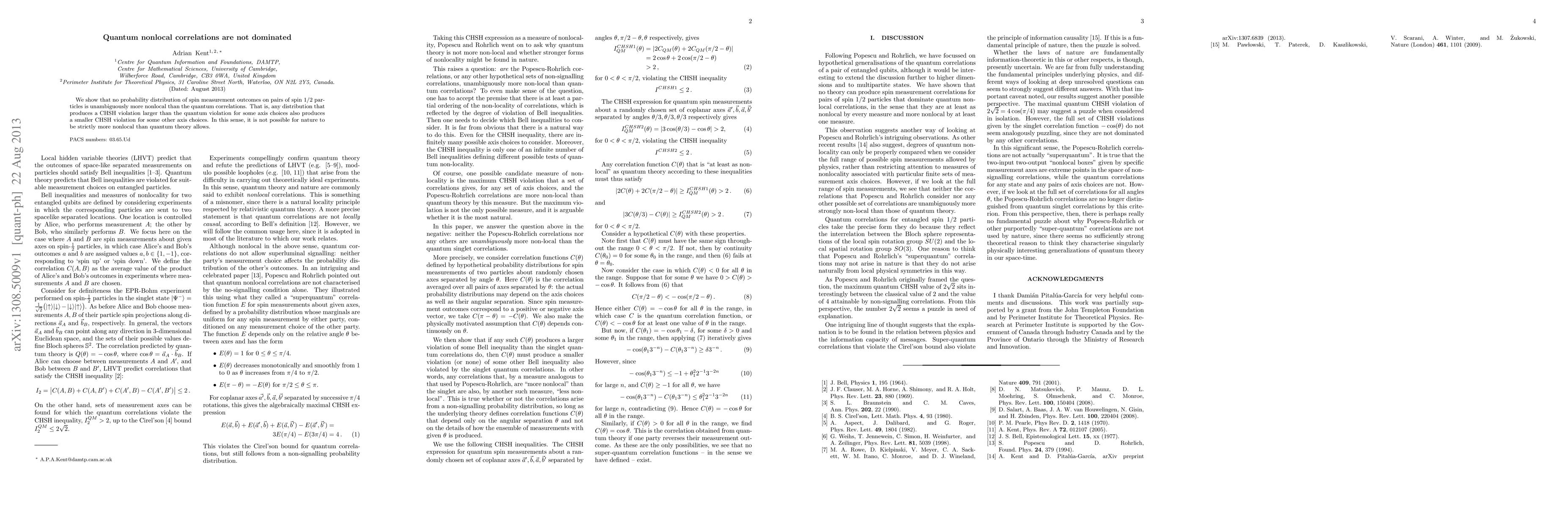 We show that no probability distribution of spin measurement outcomes on pairs of spin 1/2 particles is unambiguously more nonlocal than the quantum correlations. That is, any distribution that produces a CHSH violation larger than the quantum violation for some axis choices also produces a smaller CHSH violation for some other axis choices. In this sense, it is not possible for nature to be strictly more nonlocal than quantum theory allows.