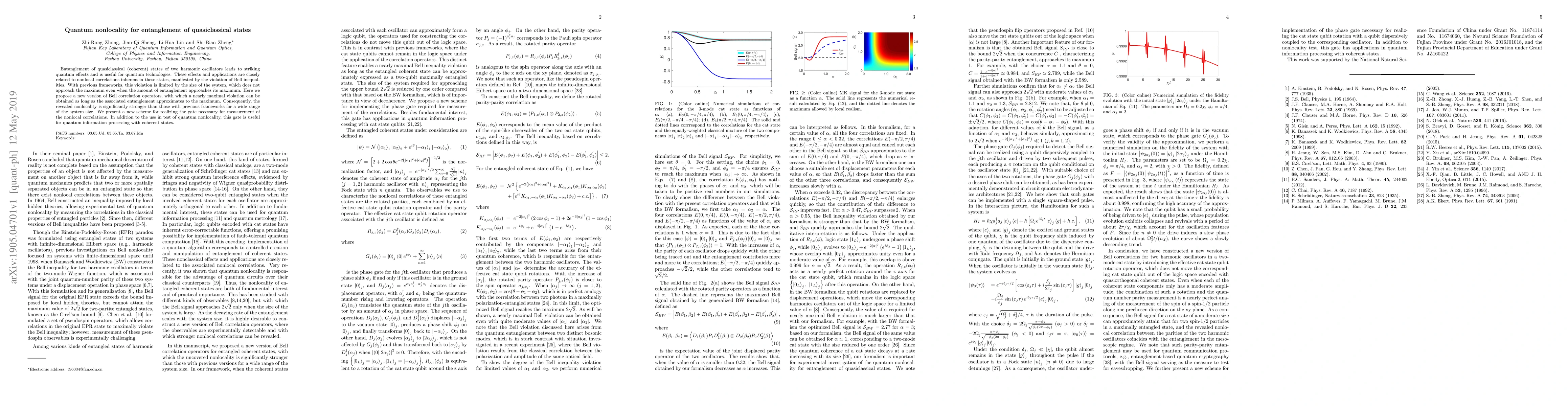 This paper proposes a new framework for achieving nearly maximal violation of Bell inequalities in the entanglement of quasiclassical states, demonstrating significantly stronger quantum nonlocality compared to previous methods. The authors introduce novel Bell correlation operators and a new gate scheme for measuring these correlations, which also has applications in quantum information processing.