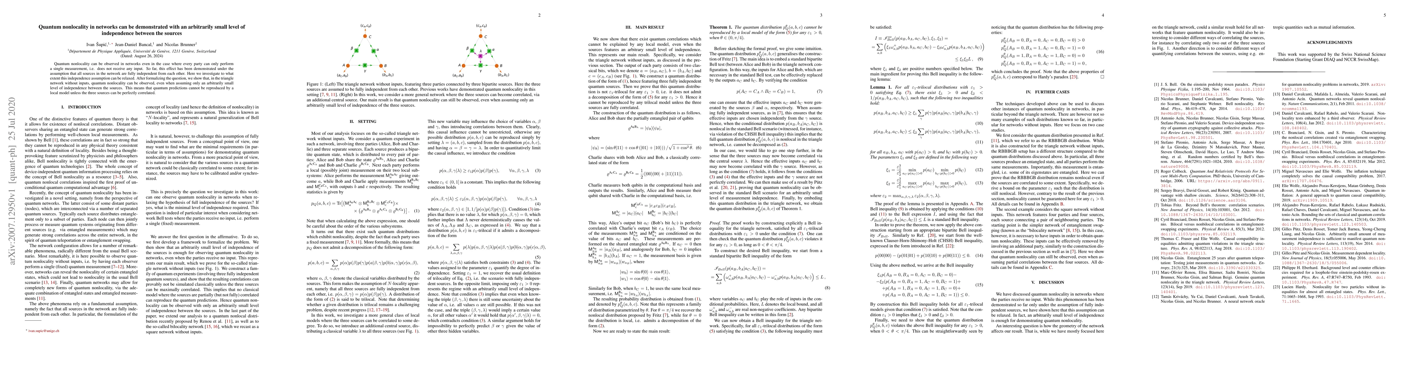 Summary: This paper demonstrates quantum nonlocality in networks with minimal source independence, showing that quantum predictions remain nonlocal even when sources are only slightly correlated, challenging the need for full independence.