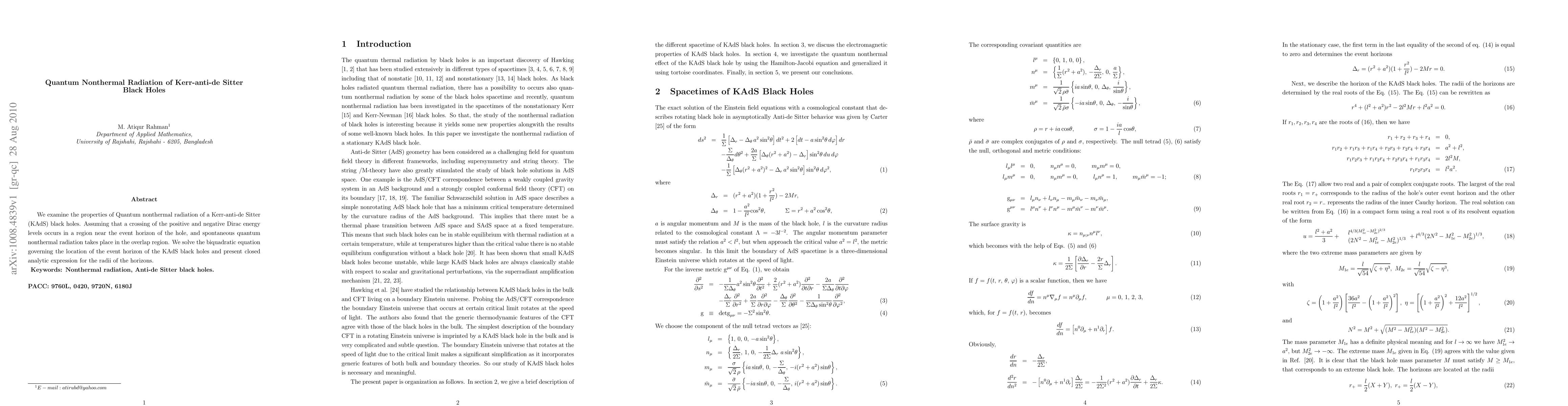 Researchers studied the quantum nonthermal radiation of Kerr-anti-de Sitter black holes, finding closed analytic expressions for their event horizon radii.