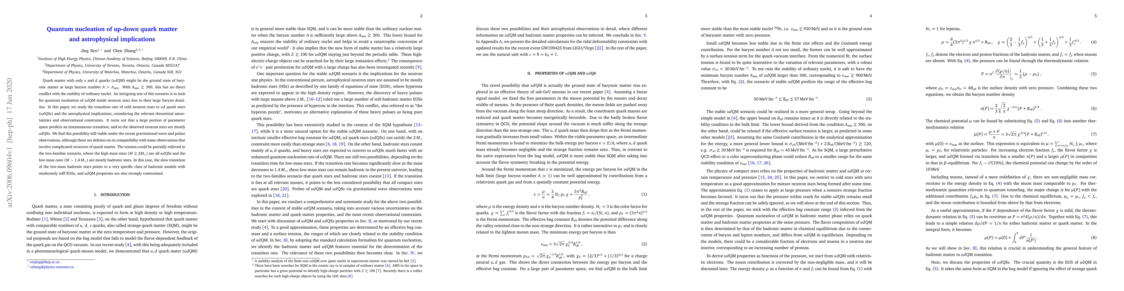 This paper investigates the quantum nucleation of up-down quark matter ($ud$QM) in neutron stars, suggesting that many neutron stars could transition to $ud$ quark stars ($ud$QSs). The study finds that recent gravitational wave and pulsar observations are compatible with this scenario, though some tensions remain, which could be alleviated by a specific class of hadronic models.