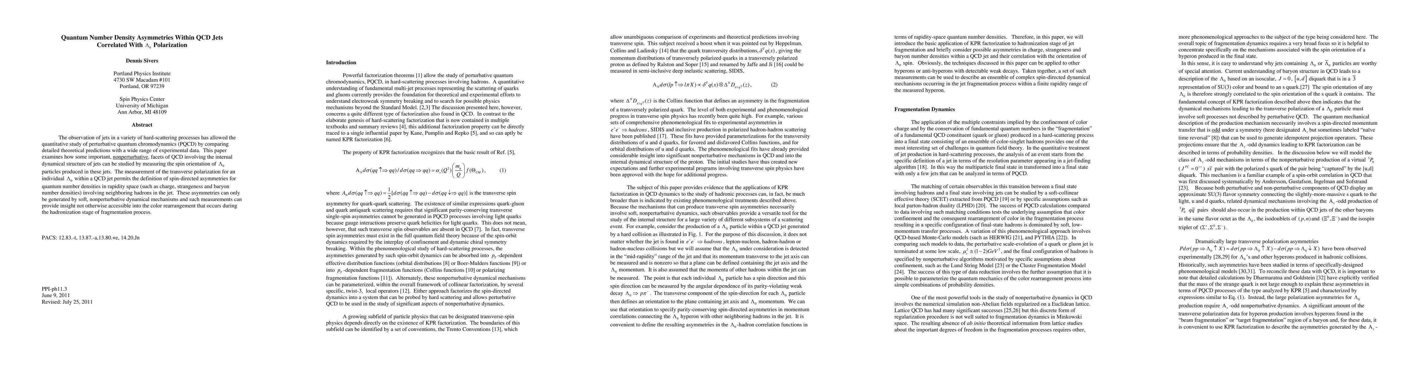 The observation of jets in a variety of hard-scattering processes has allowed the quantitative study of perturbative quantum chromodynamics (PQCD) by comparing detailed theoretical predictions with a wide range of experimental data. This paper examines how some important, nonperturbative, facets of QCD involving the internal dynamical structure of jets can be studied by measuring the spin orientation of Lambda particles produced in these jets. The measurement of the transverse polarization for an individual Lambda within a QCD jet permits the definition of spin-directed asymmetries in local quantum number densities in rapidity space (such as charge, strangeness and baryon number densities) involving neighboring hadrons in the jet. These asymmetries can only be generated by soft, nonperturbative dynamical mechanisms and such measurements can provide insight not otherwise accessible into the color rearrangement that occurs during the hadronization stage of the fragmentation process.