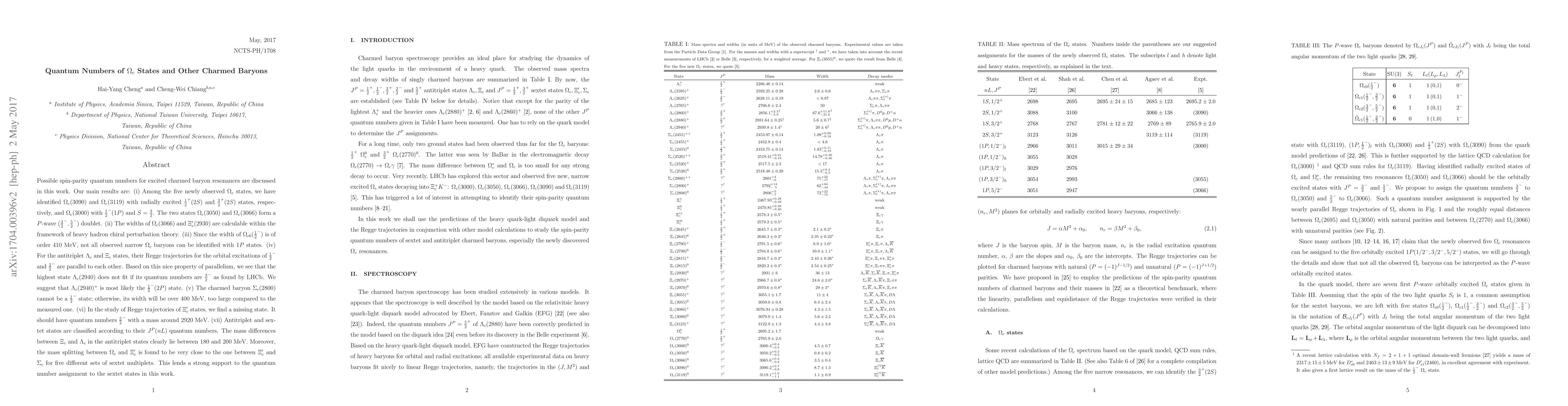 This paper identifies the quantum numbers of newly observed $\Omega_c$ states and other charmed baryons, suggesting that $\Omega_c(3090)$ and $\Omega_c(3119)$ are radially excited $\frac12^+(2S)$ and $\frac32^+(2S)$ states, respectively, while $\Omega_c(3000)$ is $\frac12^-(1P)$ with $S=\frac32$. It also proposes a missing $\frac52^-$ $\Xi'_c$ state around 2920 MeV.