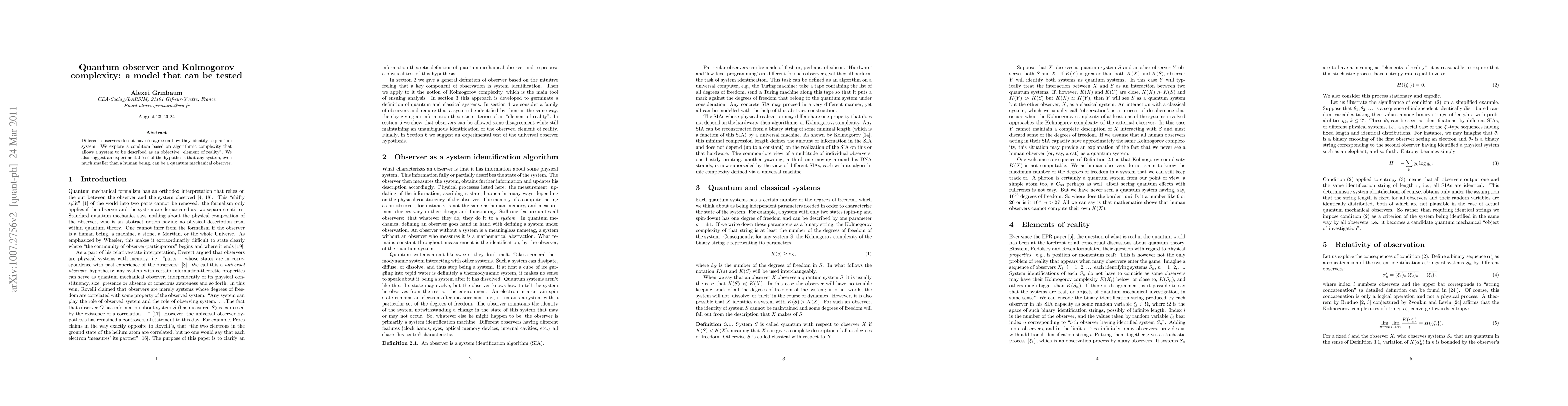 Different observers do not have to agree on how they identify a quantum system. We explore a condition based on algorithmic complexity that allows a system to be described as an objective "element of reality". We also suggest an experimental test of the hypothesis that any system, even much smaller than a human being, can be a quantum mechanical observer.