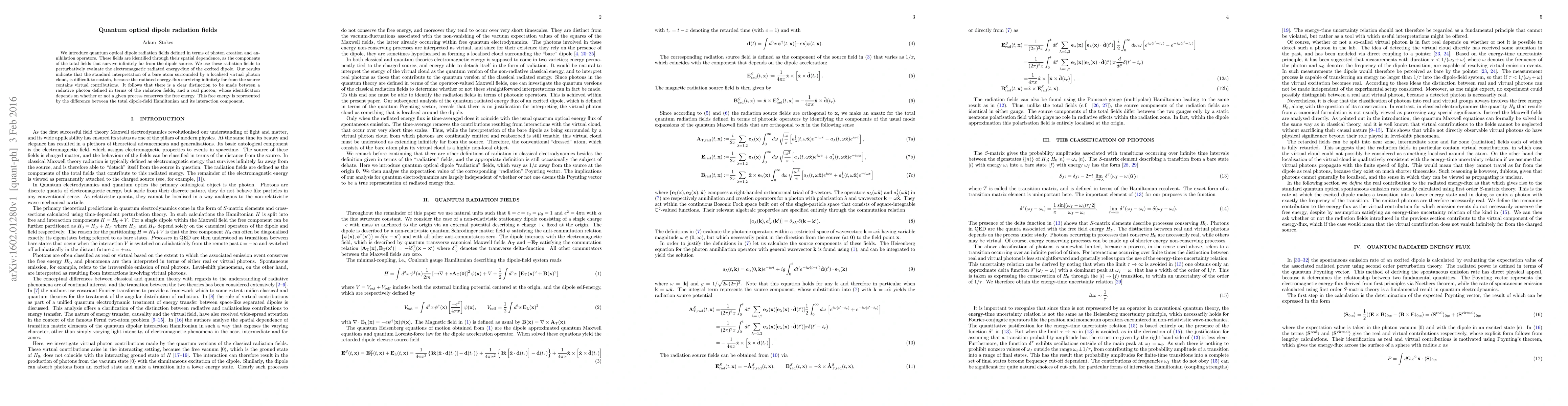 The paper presents a novel framework for defining and analyzing quantum optical dipole radiation fields, distinguishing between real and virtual photons based on free energy conservation.
