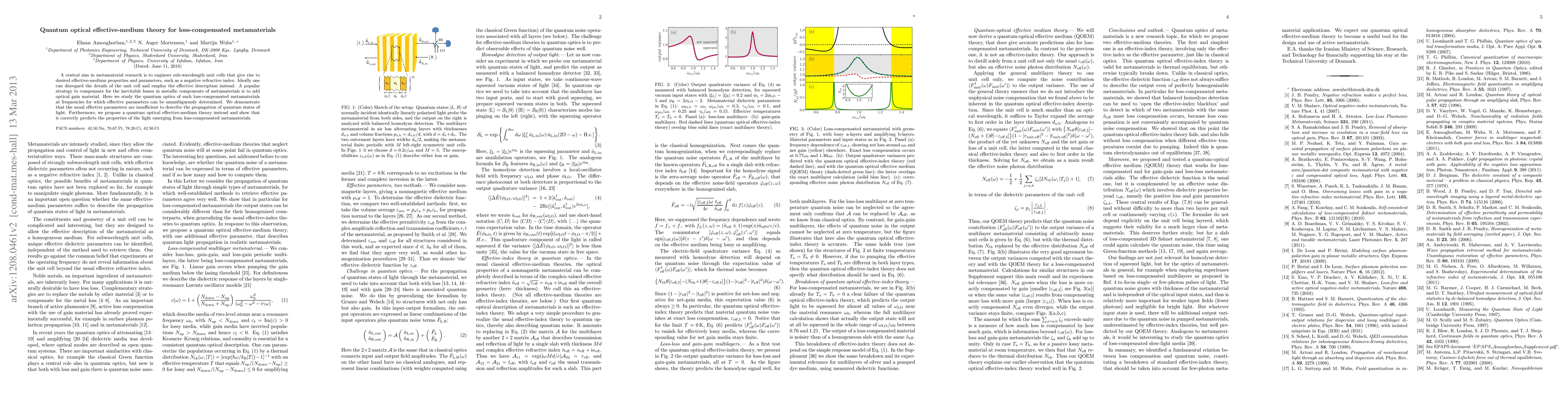 This paper develops a quantum-optical effective-medium theory for loss-compensated metamaterials, showing that traditional effective parameters are inadequate for describing quantum light propagation. The proposed theory accurately predicts the behavior of light in these metamaterials.