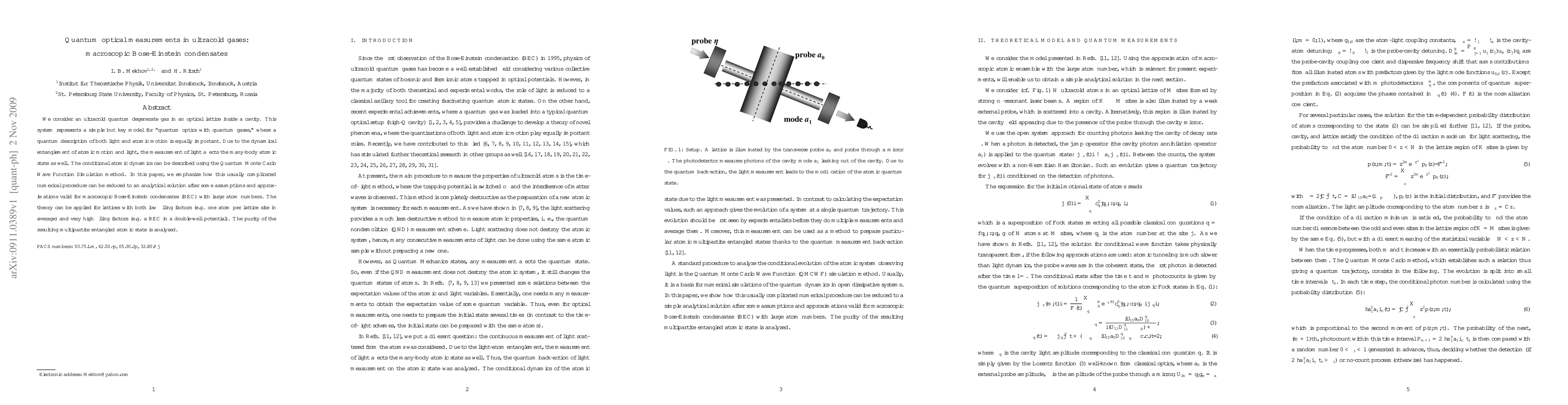 This paper explores quantum optical measurements in ultracold gases using a macroscopic Bose-Einstein condensate (BEC) in an optical lattice within a cavity. It simplifies the Quantum Monte Carlo Wave Function Simulation method to an analytical solution under assumptions valid for large atom numbers, applicable to both low and high filling factors.
