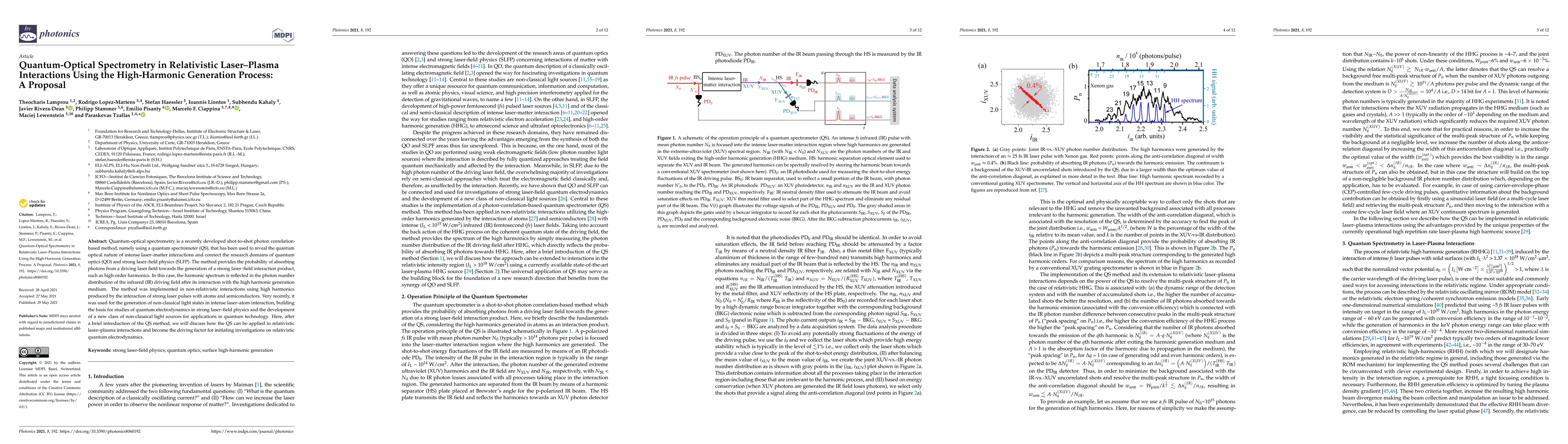 This paper proposes using quantum-optical spectrometry to study relativistic laser-plasma interactions via high-harmonic generation, aiming to bridge quantum optics and strong laser-field physics, and to explore relativistic quantum electrodynamics. The quantum spectrometer method, which analyzes photon correlations, could reveal the quantum nature of these interactions and generate non-classical light states.