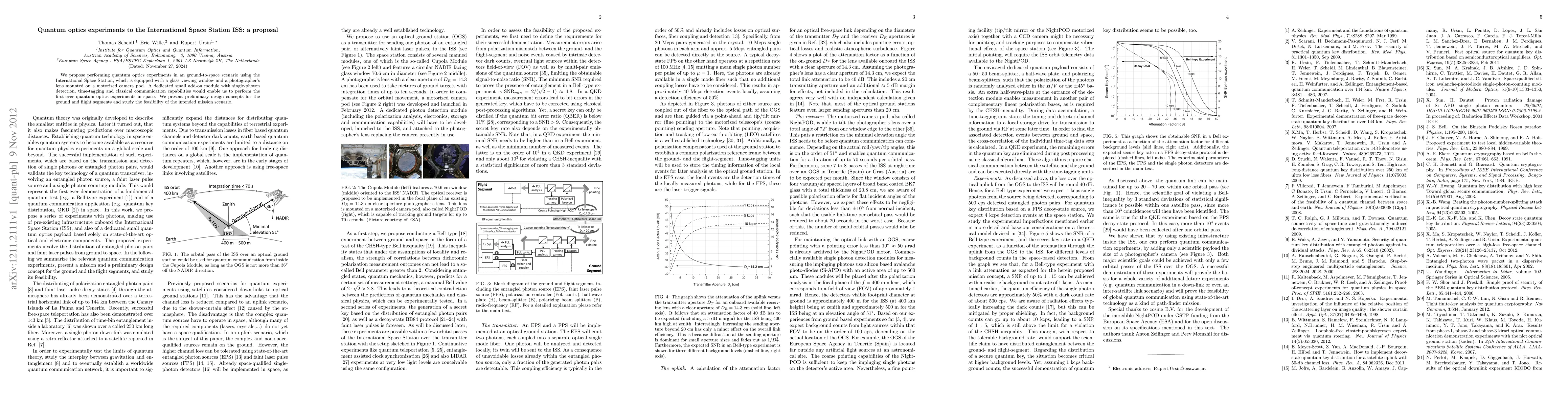 We propose performing quantum optics experiments in an ground-to-space scenario using the International Space Station, which is equipped with a glass viewing window and a photographer's lens mounted on a motorized camera pod. A dedicated small add-on module with single-photon detection, time-tagging and classical communication capabilities would enable us to perform the first-ever quantum optics experiments in space. We present preliminary design concepts for the ground and flight segments and study the feasibility of the intended mission scenario.