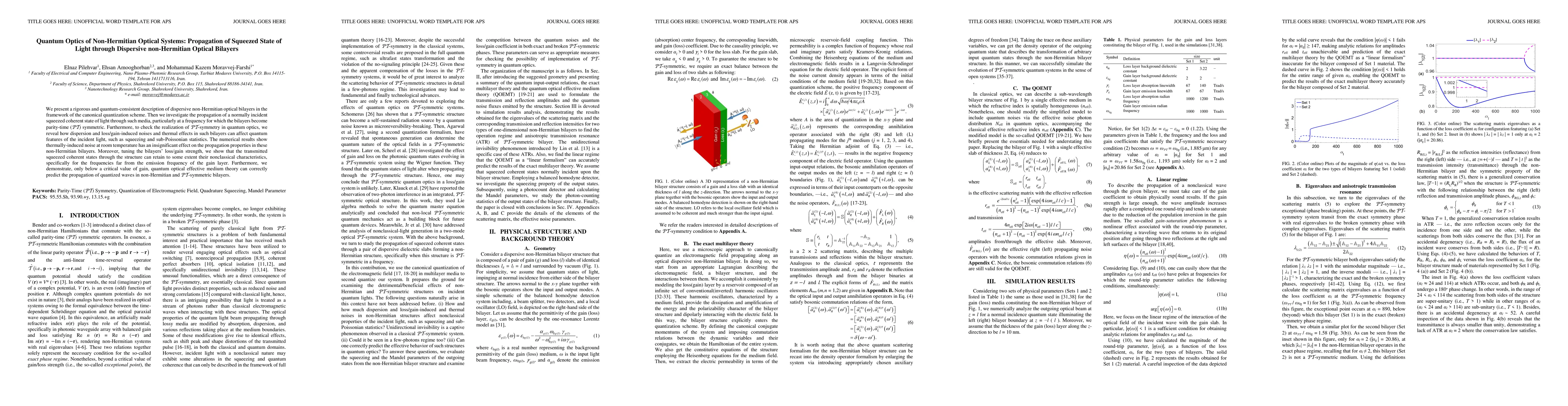 This paper rigorously explores the quantum optics of dispersive non-Hermitian optical bilayers, focusing on the propagation of squeezed coherent light states through PT-symmetric conditions. It reveals that thermal effects have minimal impact on propagation, and tunable loss/gain strengths can preserve the squeezed state's nonclassical characteristics, validating quantum optical effective medium theory under specific conditions.