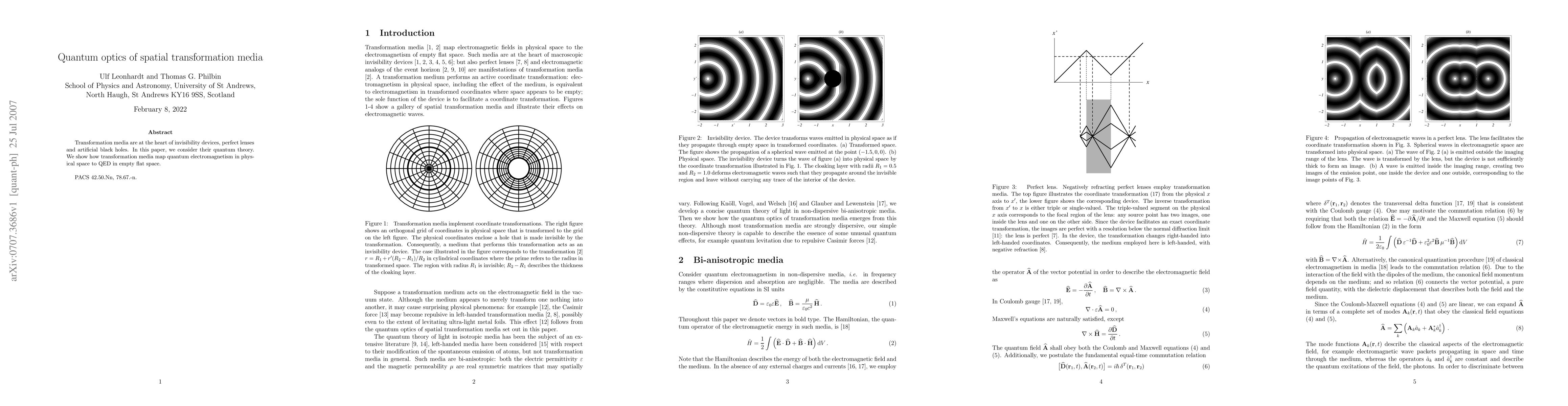 This paper explores the quantum theory of transformation media, demonstrating how these materials can map quantum electromagnetism in physical space to quantum electrodynamics (QED) in flat space, with implications for invisibility and perfect lensing.