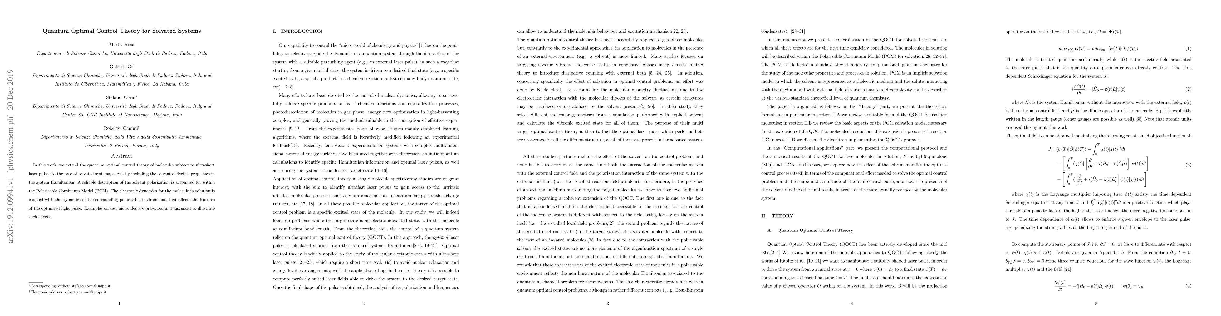 The research extends Quantum Optimal Control Theory (QOCT) to solvated systems, incorporating solvent dielectric properties via the Polarizable Continuum Model (PCM). It applies the iterative algorithm introduced by Rabitz et al. and also implements a second algorithm from Ref.[46].