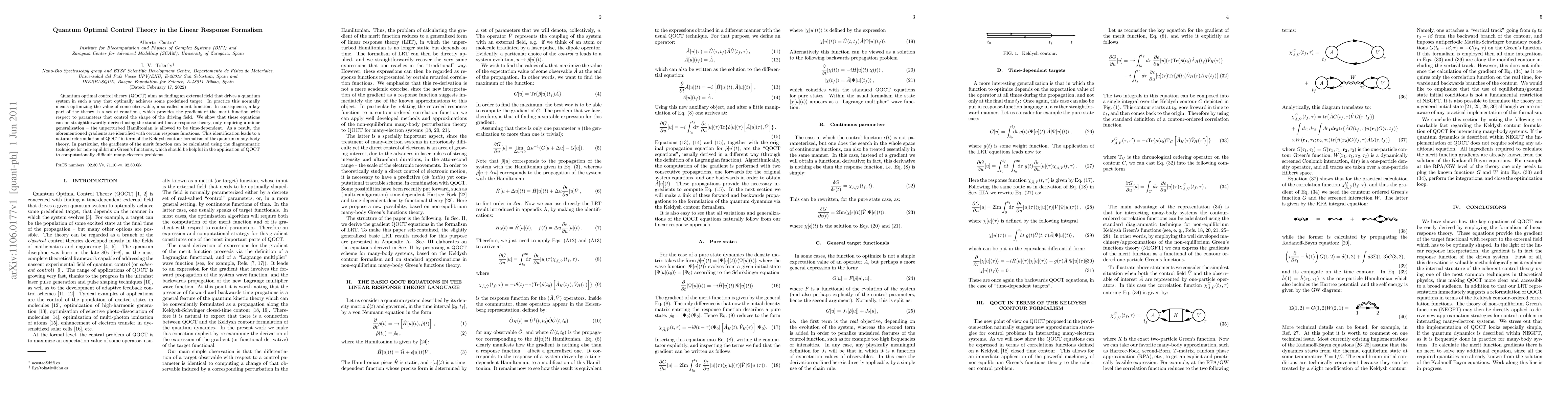 Quantum optimal control theory (QOCT) aims at finding an external field that drives a quantum system in such a way that optimally achieves some predefined target. In practice this normally means optimizing the value of some observable, a so called merit function. In consequence, a key part of the theory is a set of equations, which provides the gradient of the merit function with respect to parameters that control the shape of the driving field. We show that these equations can be straightforwardly derived using the standard linear response theory, only requiring a minor generalization -- the unperturbed Hamiltonian is allowed to be time-dependent. As a result, the aforementioned gradients are identified with certain response functions. This identification leads to a natural reformulation of QOCT in term of the Keldysh contour formalism of the quantum many-body theory. In particular, the gradients of the merit function can be calculated using the diagrammatic technique for non-equilibrium Green's functions, which should be helpful in the application of QOCT to computationally difficult many-electron problems.