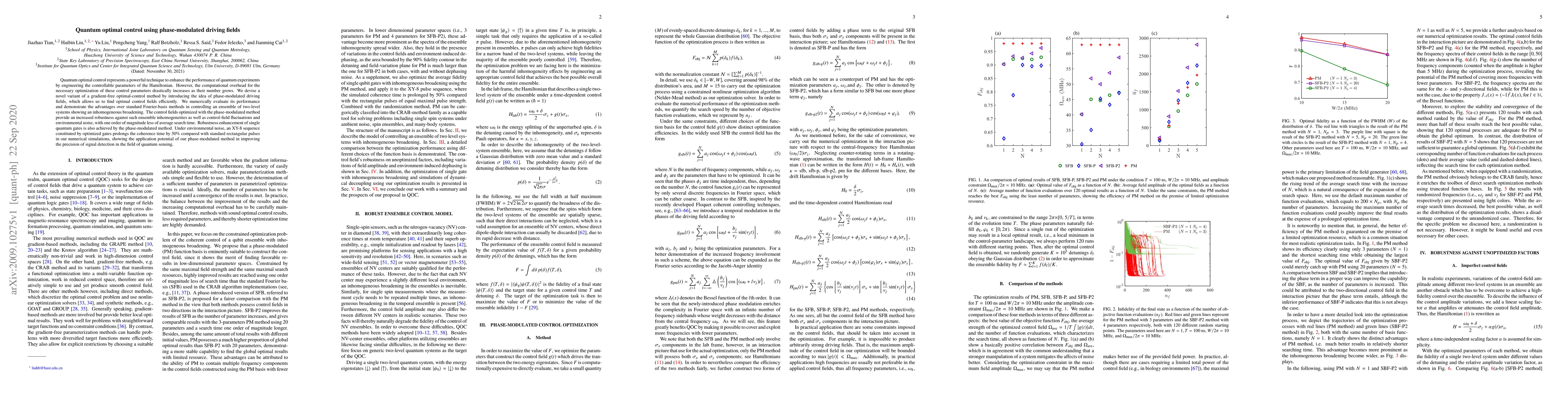 This paper introduces a novel gradient-free optimal-control method using phase-modulated driving fields to efficiently optimize quantum control parameters, demonstrating significant improvements in robustness and coherence time over standard methods, especially under environmental noise. The method reduces average search time by an order of magnitude and enhances the precision of quantum sensing.
