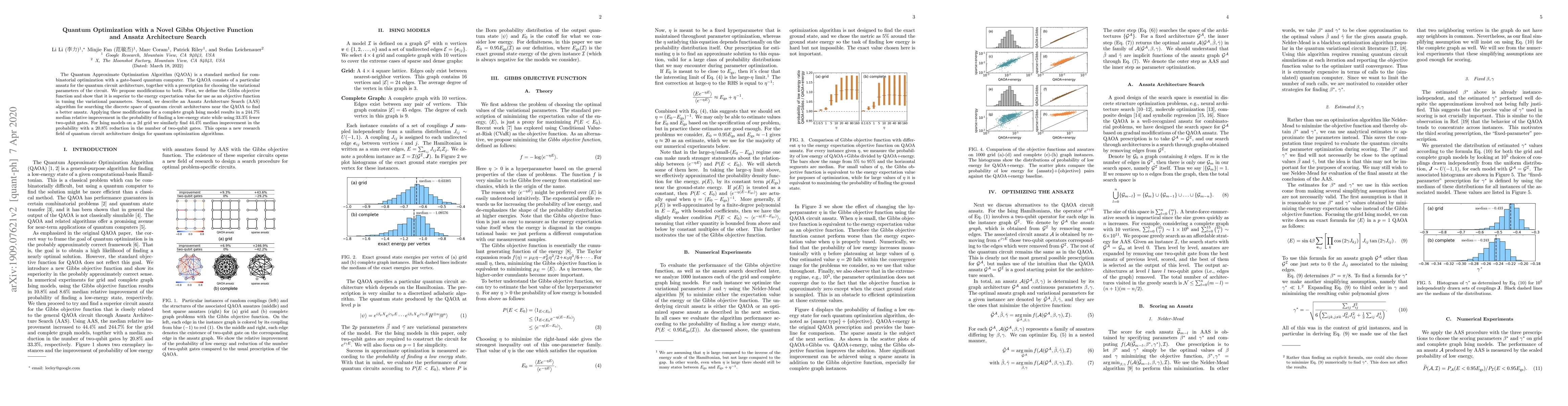The Quantum Approximate Optimization Algorithm (QAOA) is a standard method for combinatorial optimization with a gate-based quantum computer. The QAOA consists of a particular ansatz for the quantum circuit architecture, together with a prescription for choosing the variational parameters of the circuit. We propose modifications to both. First, we define the Gibbs objective function and show that it is superior to the energy expectation value for use as an objective function in tuning the variational parameters. Second, we describe an Ansatz Architecture Search (AAS) algorithm for searching the discrete space of quantum circuit architectures near the QAOA to find a better ansatz. Applying these modifications for a complete graph Ising model results in a $244.7\%$ median relative improvement in the probability of finding a low-energy state while using $33.3\%$ fewer two-qubit gates. For Ising models on a 2d grid we similarly find $44.4\%$ median improvement in the probability with a $20.8\%$ reduction in the number of two-qubit gates. This opens a new research field of quantum circuit architecture design for quantum optimization algorithms.