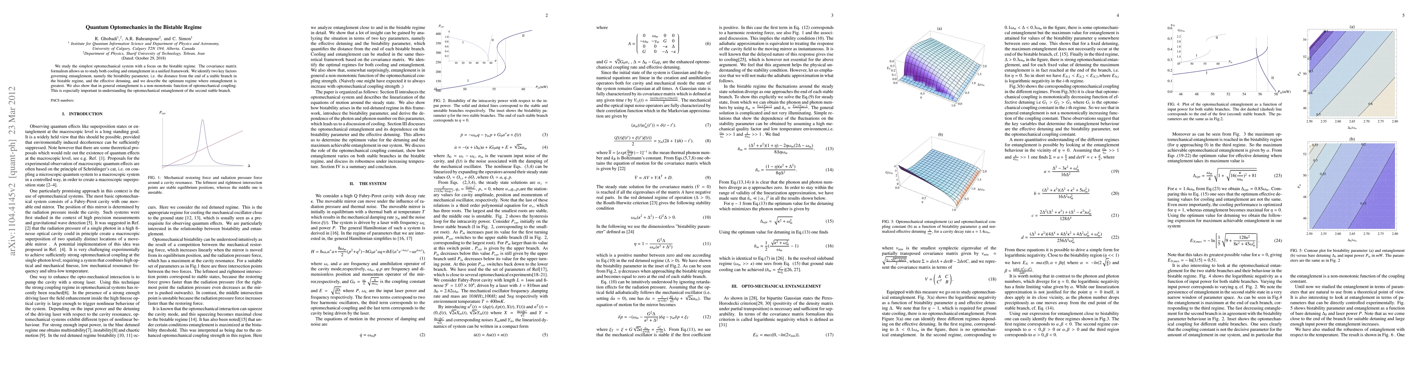 This paper explores quantum optomechanics in the bistable regime, revealing the factors influencing entanglement through the covariance matrix formalism. It identifies the bistability parameter and effective detuning as key determinants, highlighting the optimal conditions for maximum entanglement and noting its non-monotonic dependence on optomechanical coupling.