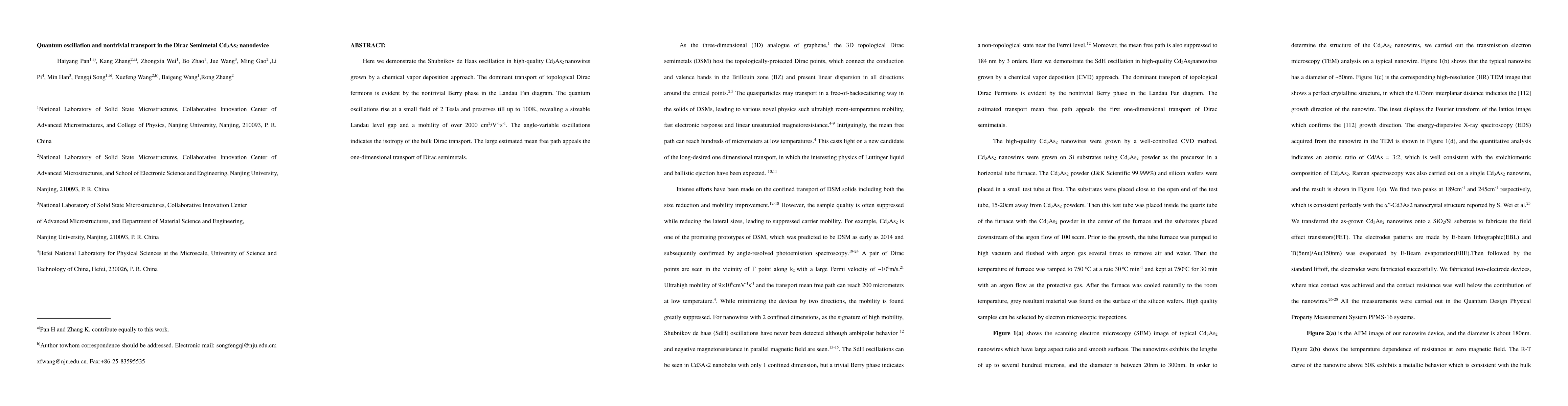 Here we demonstrate the Shubnikov de Haas oscillation in high-quality Cd3As2 nanowires grown by a chemical vapor deposition approach. The dominant transport of topological Dirac fermions is evident by the nontrivial Berry phase in the Landau Fan diagram. The quantum oscillations rise at a small field of 2 Tesla and preserves till up to 100K, revealing a sizeable Landau level gap and a mobility of over 2000 cm2/V-1s-1. The angle-variable oscillations indicates the isotropy of the bulk Dirac transport. The large estimated mean free path appeals the one-dimensional transport of Dirac semimetals.