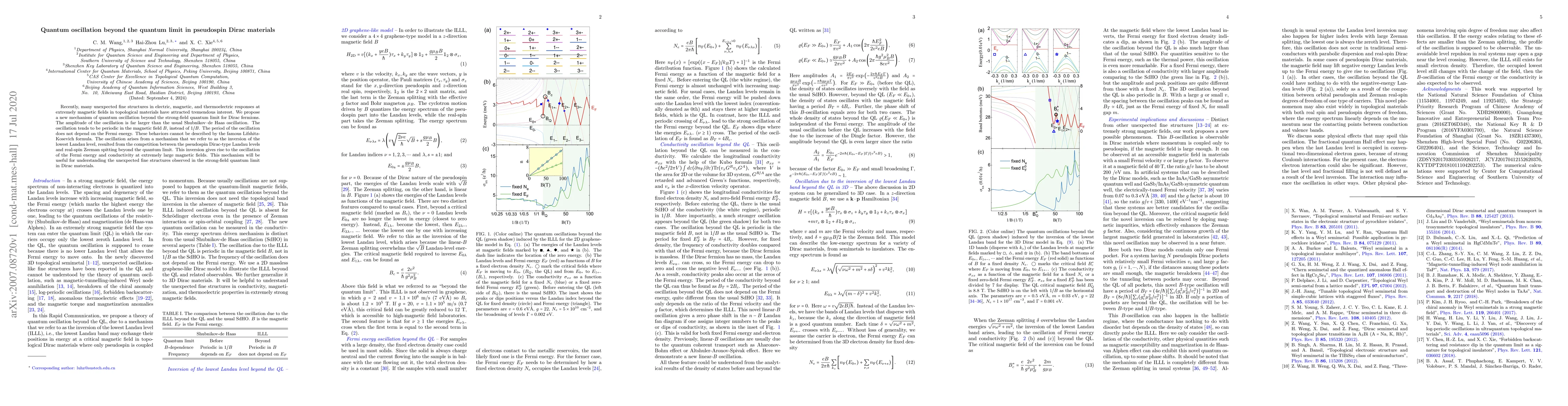 Recently, many unexpected fine structures in electric, magnetic, and thermoelectric responses at extremely magnetic fields in topological materials have attracted tremendous interest. We propose a new mechanism of quantum oscillation beyond the strong-field quantum limit for Dirac fermions. The amplitude of the oscillation is far larger than the usual Shubnikov--de Haas oscillation. The oscillation tends to be periodic in the magnetic field B, instead of 1/B. The period of the oscillation does not depend on the Fermi energy. These behaviors cannot be described by the famous Lifshitz-Kosevich formula. The oscillation arises from a mechanism that we refer to as the inversion of the lowest Landau level, resulted from the competition between the pseudospin Dirac-type Landau levels and real-spin Zeeman spitting beyond the quantum limit. This inversion gives rise to the oscillation of the Fermi energy and conductivity at extremely large magnetic fields. This mechanism will be useful for understanding the unexpected fine structures observed in the strong-field quantum limit in Dirac materials.