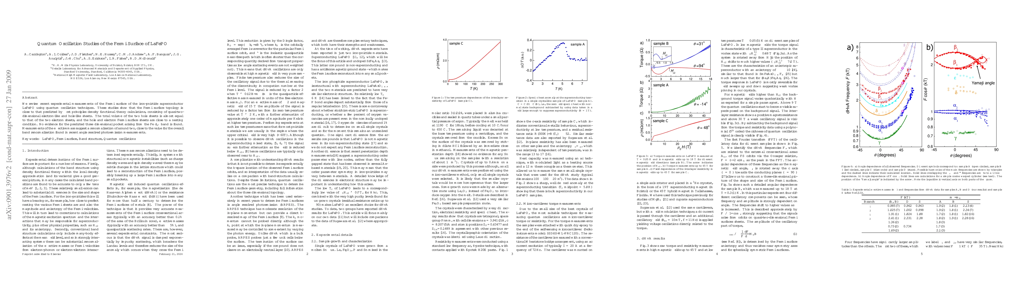 This paper reviews quantum oscillation studies of the Fermi surface in LaFePO, revealing quasi-two-dimensional electron and hole sheets with nearly equal volumes and close to nesting conditions, with no evidence for a predicted three-dimensional pocket. The effective mass shows renormalization consistent with recent angle-resolved photoemission measurements.