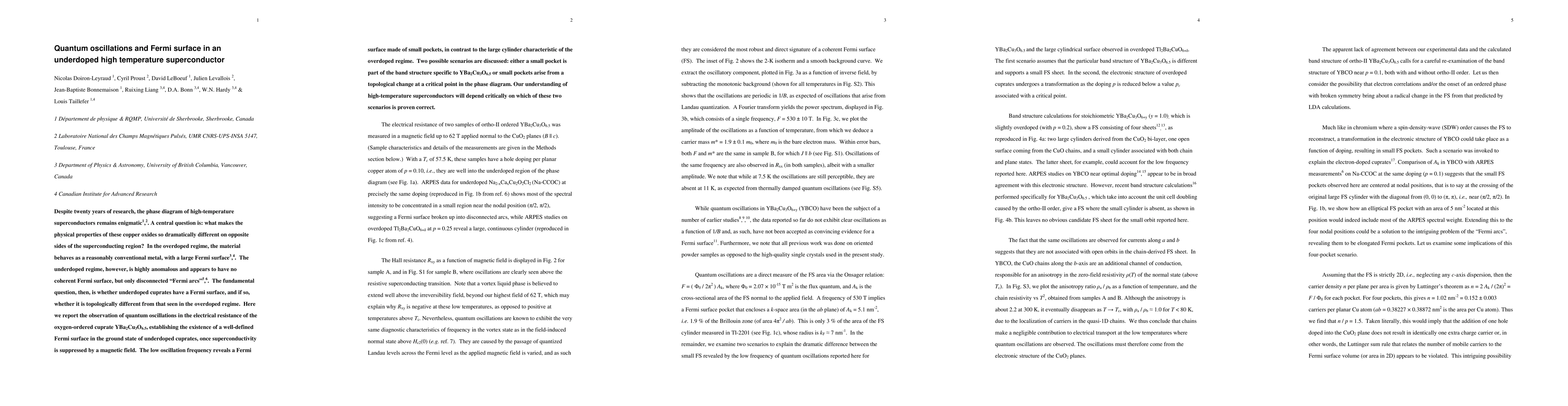 This research reveals quantum oscillations in underdoped YBa2Cu3O6.5, confirming the presence of a Fermi surface despite its small pockets, contrasting with the large Fermi surface of overdoped superconductors. The findings suggest either a unique band structure or a topological change in the superconducting phase diagram, pivotal for understanding high-Tc superconductivity.