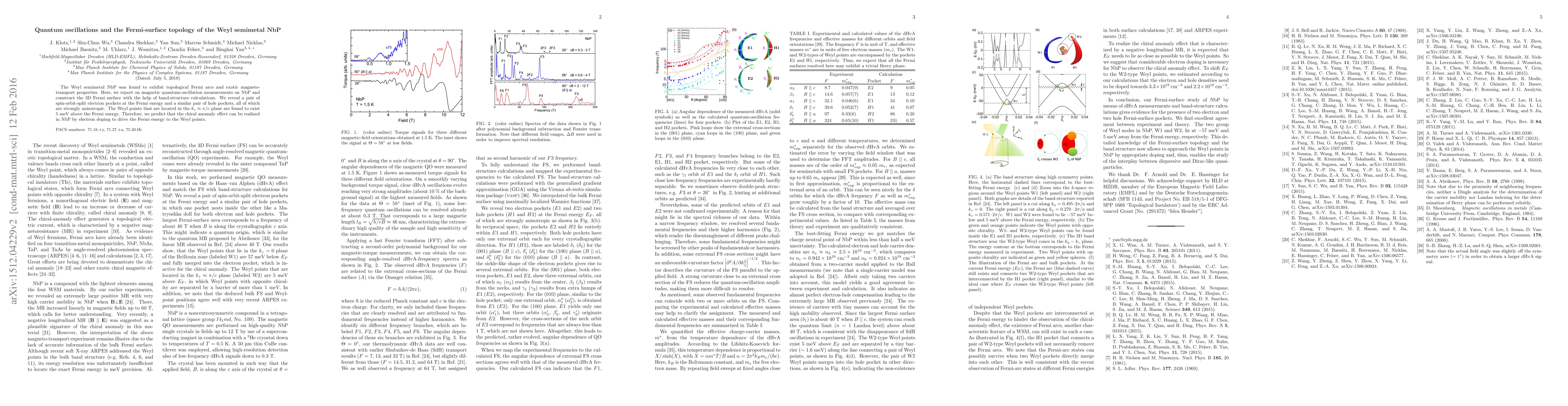 This research reveals the Fermi surface topology of the Weyl semimetal NbP through quantum oscillation measurements and band-structure calculations, identifying anisotropic electron and hole pockets. The findings explain the observed magnetoresistance and suggest that doping could induce the chiral anomaly effect.
