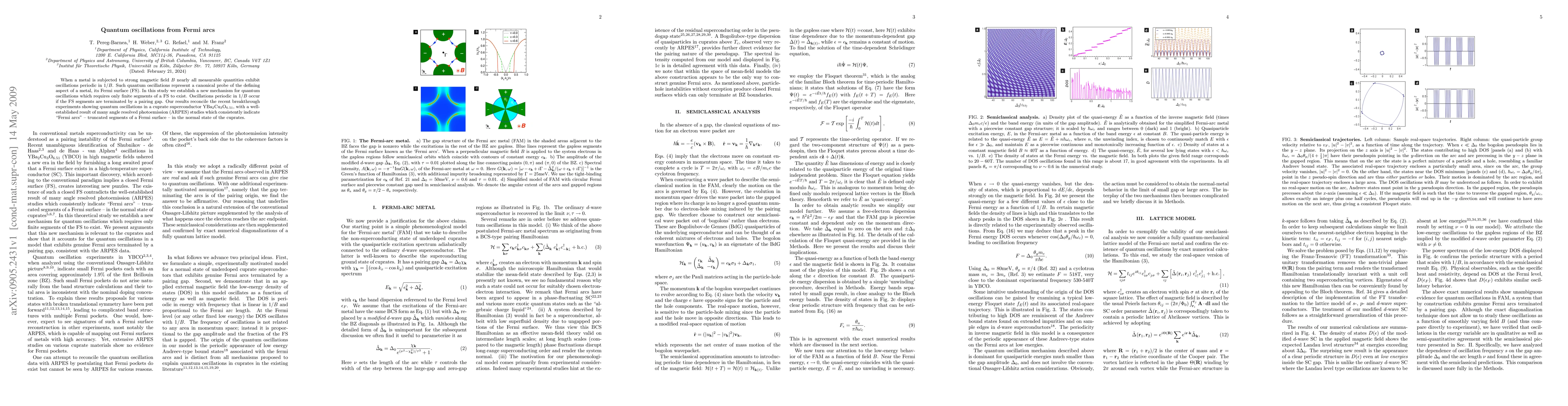 This paper proposes a new mechanism for quantum oscillations in metals, where oscillations periodic in 1/B arise from finite Fermi surface segments terminated by a pairing gap. It reconciles experimental observations of quantum oscillations in cuprate superconductors with ARPES findings of "Fermi arcs" in their normal state.