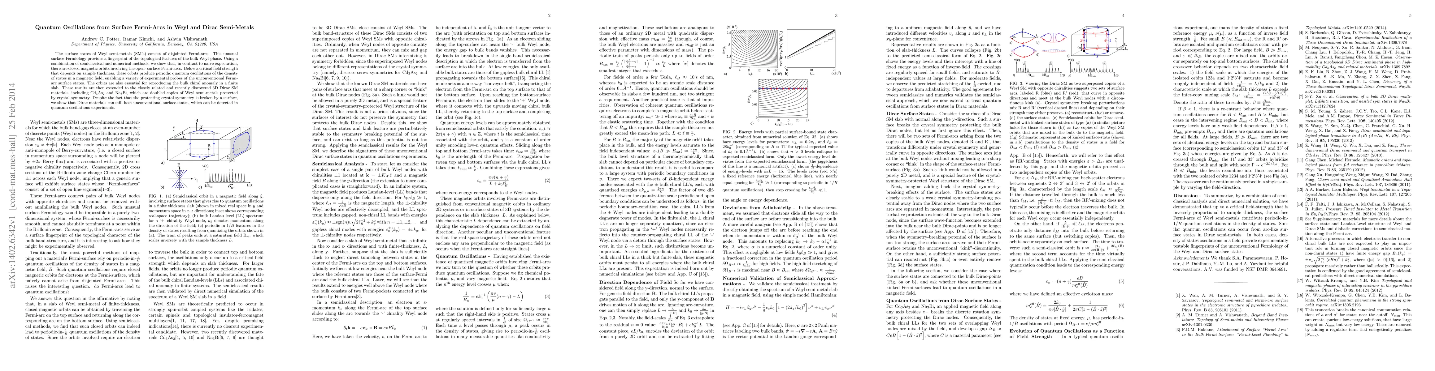 This paper demonstrates that surface Fermi-arcs in Weyl and Dirac semi-metals, contrary to expectation, support closed magnetic orbits leading to quantum oscillations in density of states, and extends these findings to Dirac materials. These oscillations offer a means to experimentally probe the topological nature of these unconventional surface states.