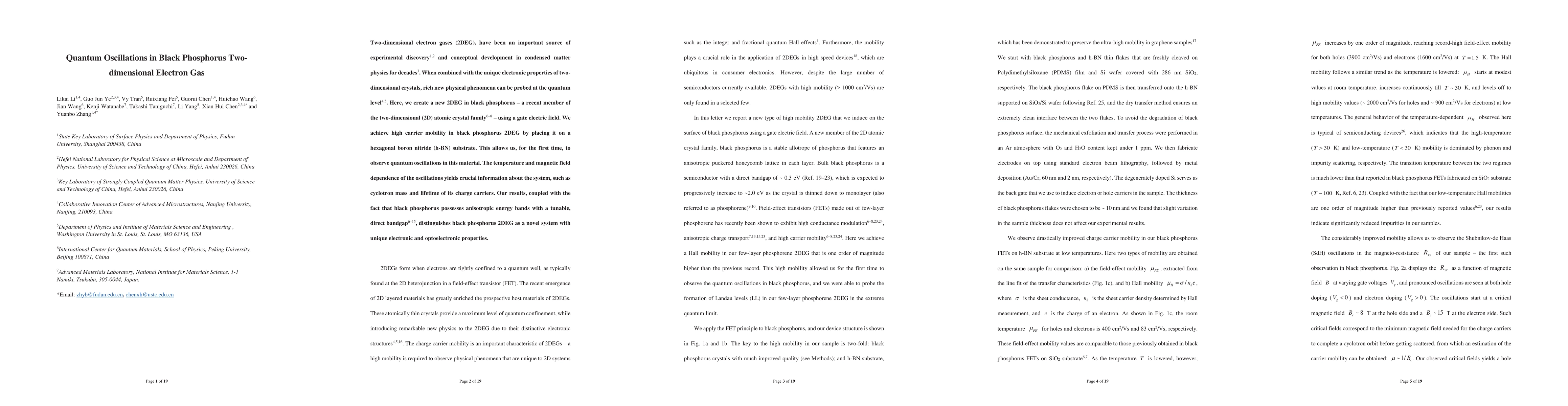 This study investigates a high-mobility two-dimensional electron gas (2DEG) in black phosphorus, achieved via a gate electric field on a hexagonal boron nitride substrate. Quantum oscillations observed provide insights into the cyclotron mass and carrier lifetime, highlighting black phosphorus 2DEG's unique electronic and optoelectronic properties.
