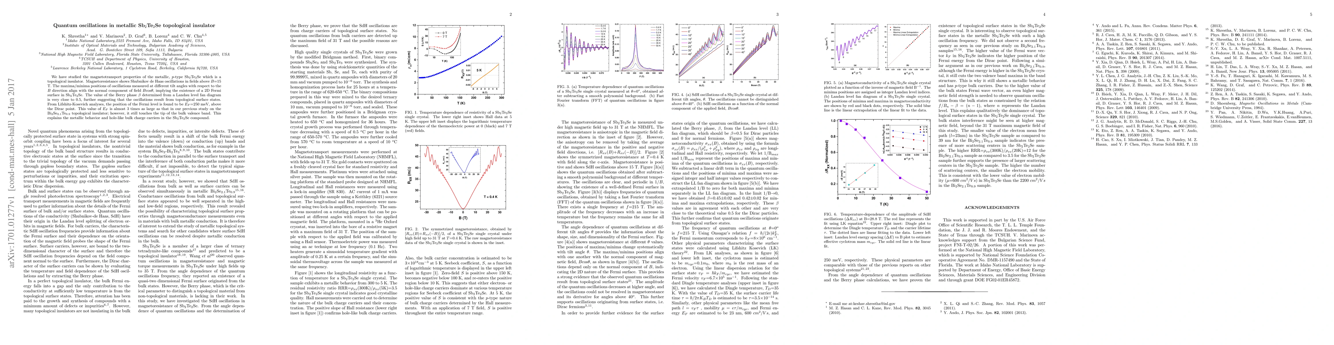 This study explores the magnetotransport properties of the metallic topological insulator Sb2Te2Se, revealing Shubnikov de Haas oscillations indicative of a 2D Fermi surface and a Berry phase close to 0.5, supporting topological surface states. The Fermi level is found to be significantly higher than in previous Bi2Se2:1Te0:9 studies, explaining the metallic behavior and hole-like bulk charge carriers.