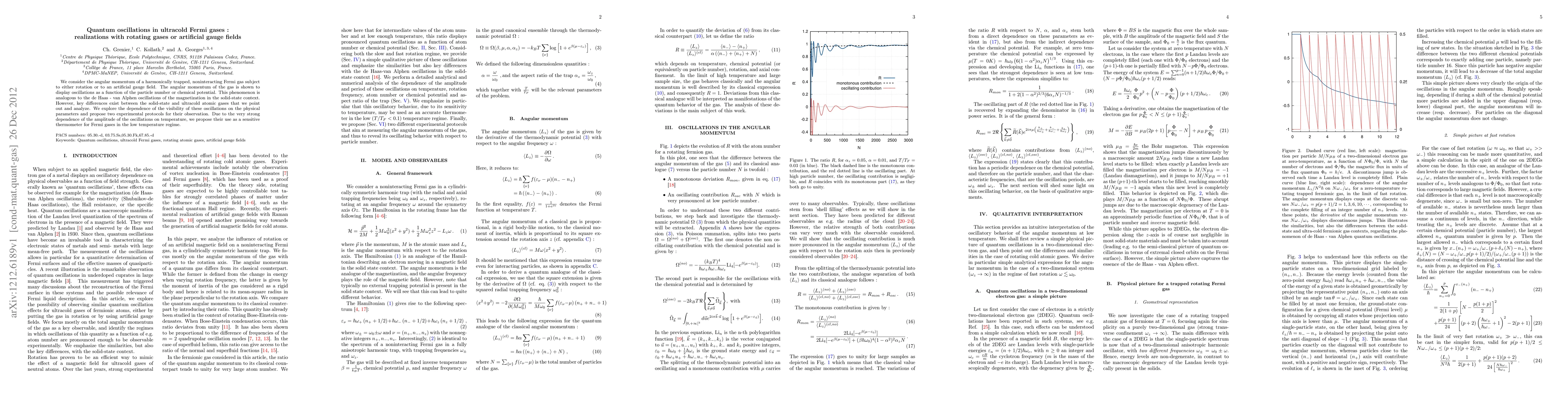 This paper investigates quantum oscillations in ultracold Fermi gases under rotation or artificial gauge fields, revealing oscillations in angular momentum analogous to de Haas-van Alphen effects in solids. It proposes experimental protocols for observing these oscillations and suggests their use as a sensitive thermometer in low temperature regimes.