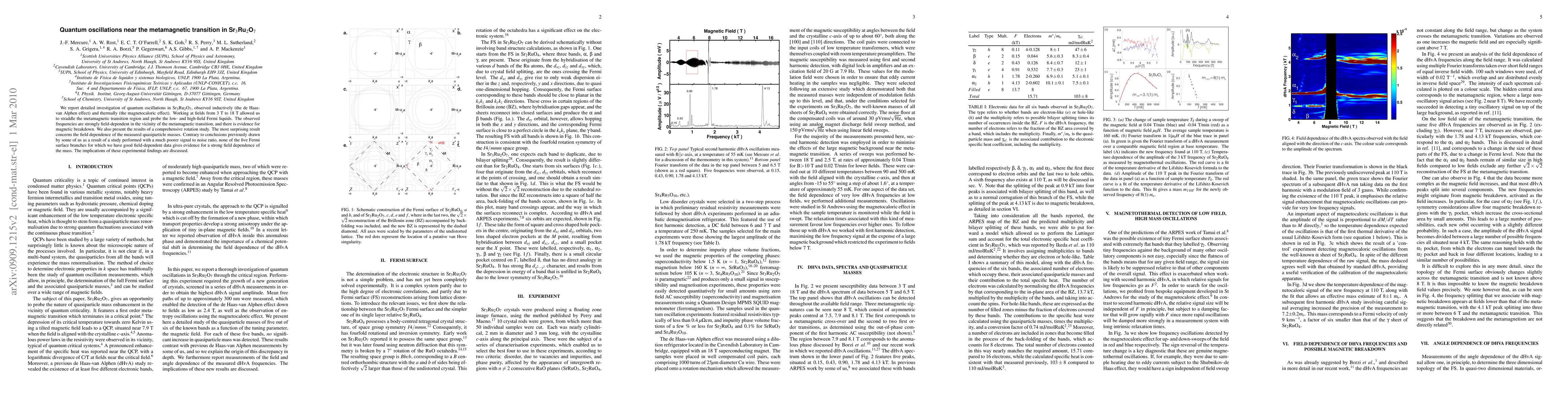 Researchers investigated quantum oscillations in Sr3Ru2O7 near its metamagnetic transition, finding that quasiparticle masses remain consistent across field strengths, contradicting previous theories.