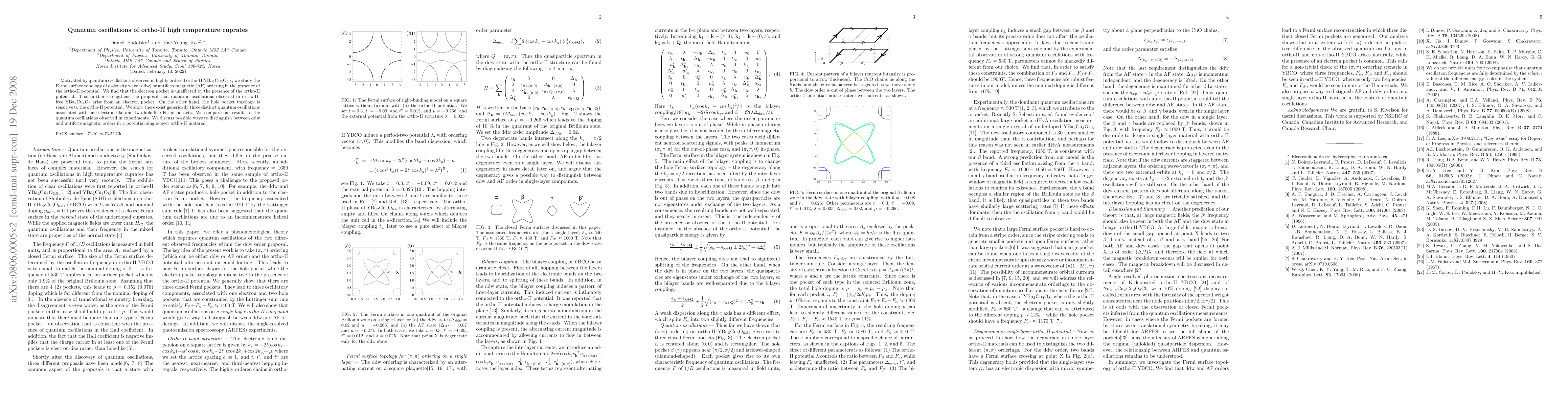 Motivated by quantum oscillations observed in highly ordered ortho-II YBa_2Cu_3O_6.5, we study the Fermi surface topology of d-density wave (ddw) or antiferromagnetic (AF) ordering in the presence of the ortho-II potential. We find that the electron pocket is unaffected by the presence of the ortho-II potential. This further strengthens the proposal that quantum oscillations observed in ortho-II-free YBa_2Cu_4O_8 arise from an electron pocket. On the other hand, the hole pocket topology is sensitive to the ortho-II potential. We show there exist generically three distinct quantum oscillations associated with one electron-like and two hole-like Fermi pockets. We compare our results to the quantum oscillations observed in experiments. We discuss possible ways to distinguish between ddw and antiferromagnetic orders in a potential single-layer ortho-II material.