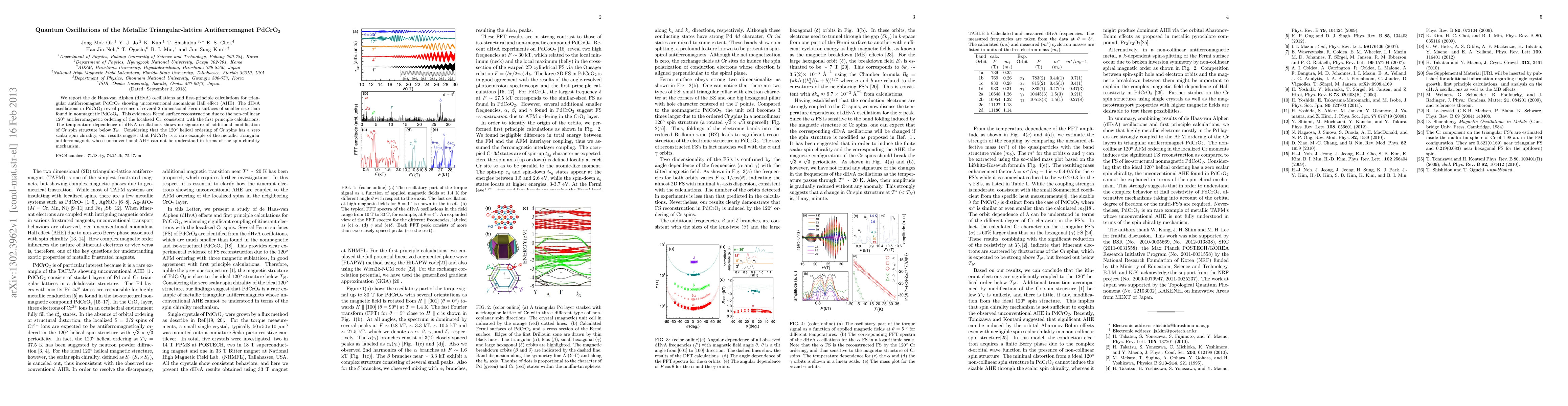 This paper reports the de Haas-van Alphen oscillations in PdCrO2, revealing smaller 2D Fermi surfaces due to its non-collinear antiferromagnetic ordering. The study finds that the unconventional anomalous Hall effect cannot be explained by spin chirality, marking PdCrO2 as a unique metallic triangular antiferromagnet.