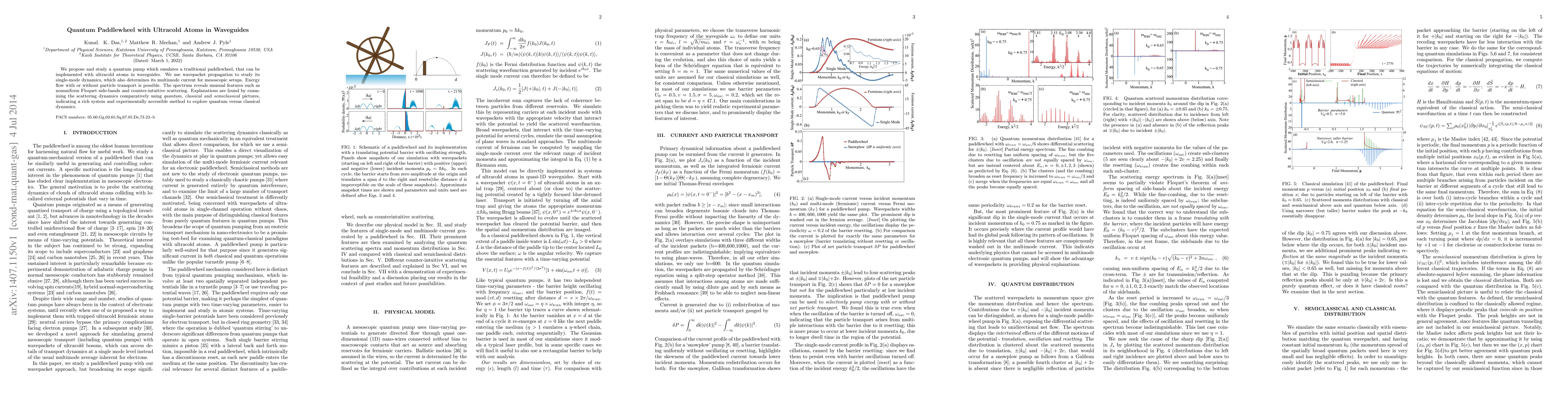 This paper proposes a quantum pump modeled after a paddlewheel using ultracold atoms in waveguides, examining its dynamics and multimode current. The study reveals unique features like nonuniform Floquet side-bands and counter-intuitive scattering, offering insights into quantum versus classical dynamics through comparative analysis.