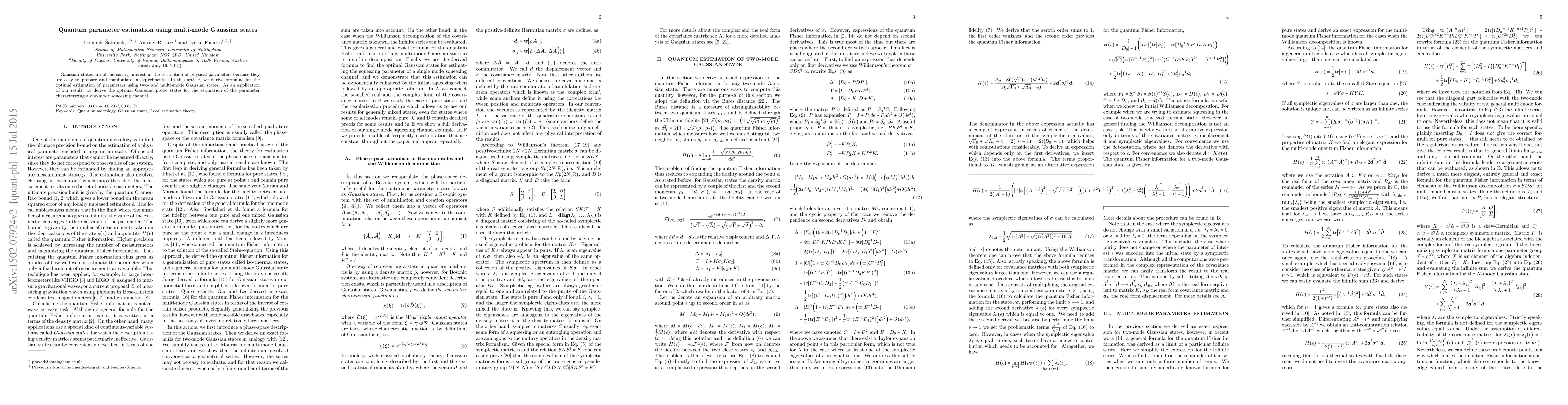 This paper derives optimal parameter estimation formulae for multi-mode Gaussian states, demonstrating their applicability by determining the best Gaussian probe states for estimating parameters in a one-mode squeezing channel.