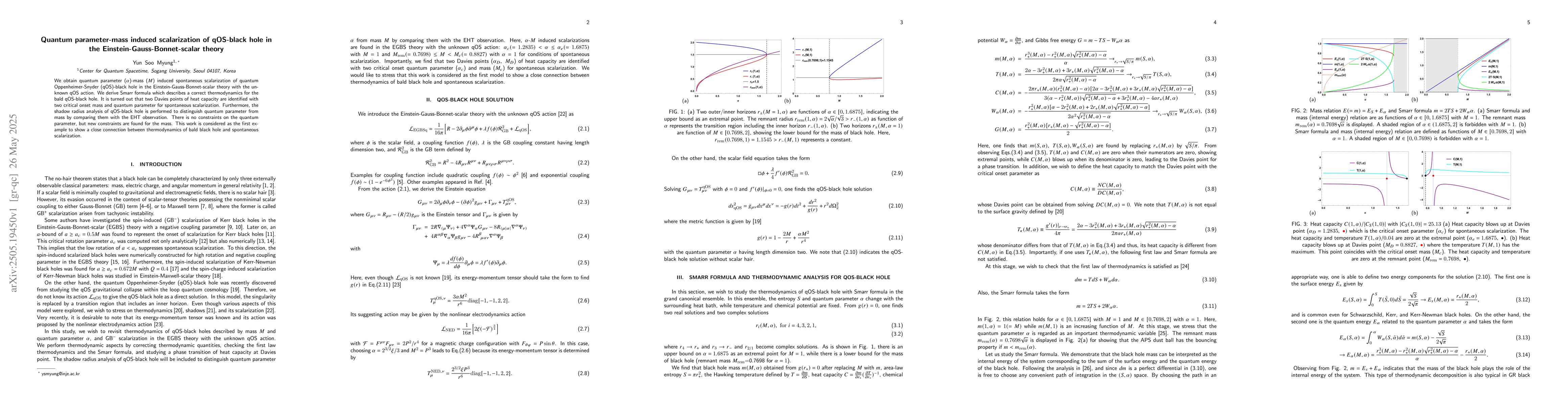 The research derives a Smarr formula for bald qOS-black hole thermodynamics in the Einstein-Gauss-Bonnet-scalar theory, identifying two Davies points of heat capacity with critical masses and quantum parameters for spontaneous scalarization.