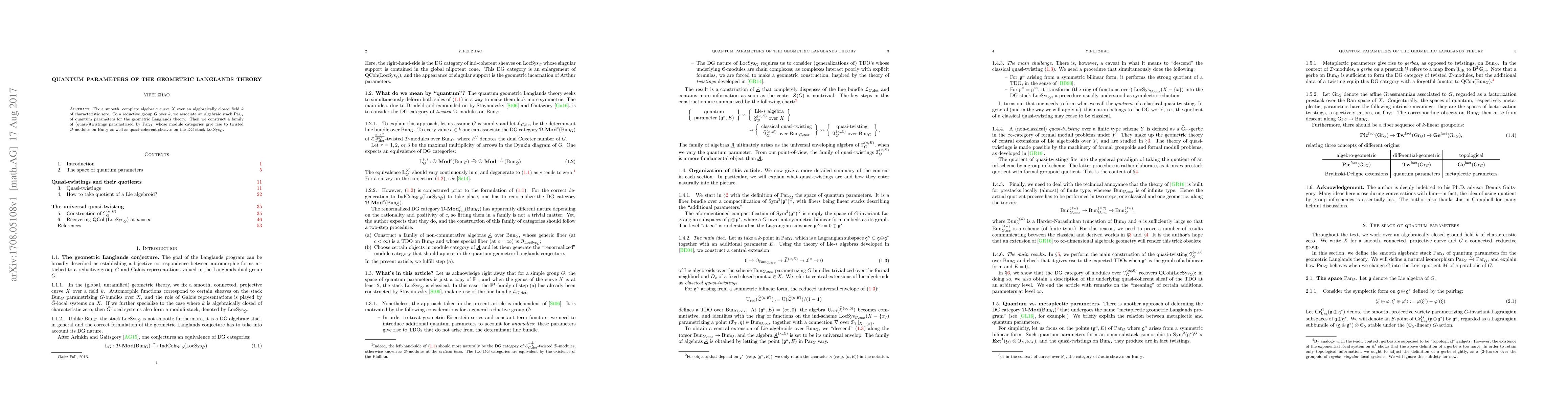 The paper constructs an algebraic stack $\operatorname{Par}_G$ of quantum parameters for the geometric Langlands theory associated with a reductive group $G$ over an algebraically closed field, and explores the construction of twisting families leading to twisted $\mathcal D$-modules and quasi-coherent sheaves.