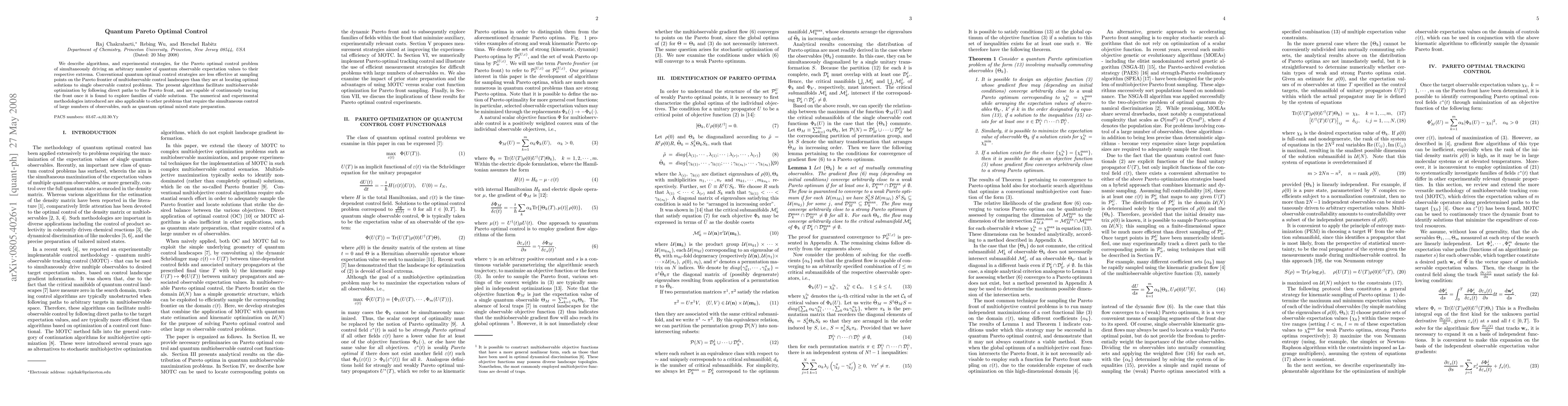 This paper presents algorithms for efficiently navigating the Pareto frontier in multiobservable quantum control problems, enabling simultaneous optimization of multiple quantum observables. These methods outperform conventional strategies by directly tracing the Pareto front and exploring viable solution sets.