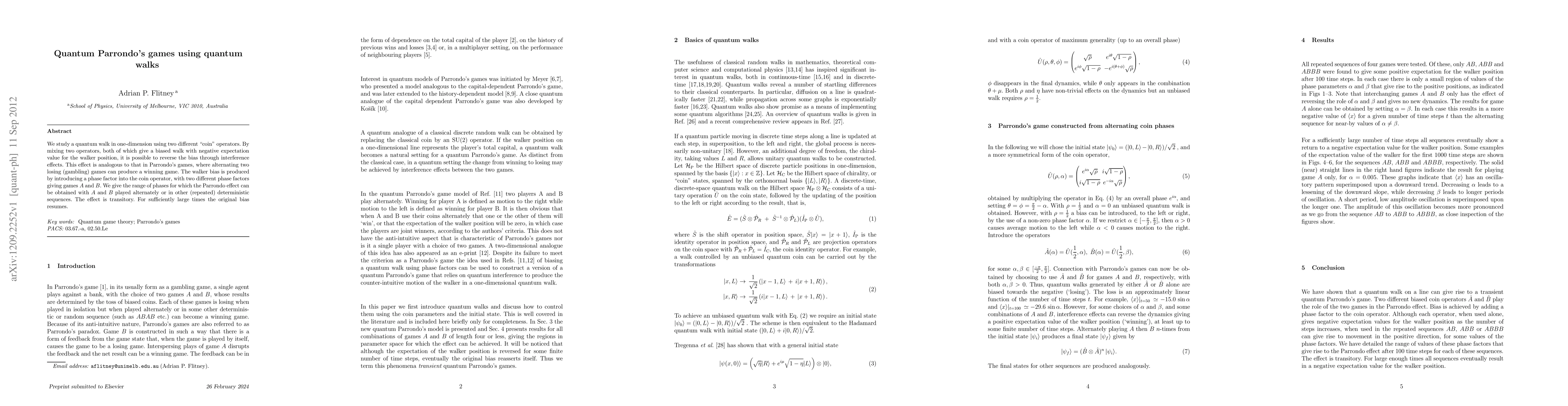 This paper explores quantum Parrondo's games using quantum walks, demonstrating how interference from two biased coin operators can reverse the walker's bias temporarily, akin to classical Parrondo's paradox. The study identifies the phase conditions under which this quantum effect occurs and its transient nature over time.