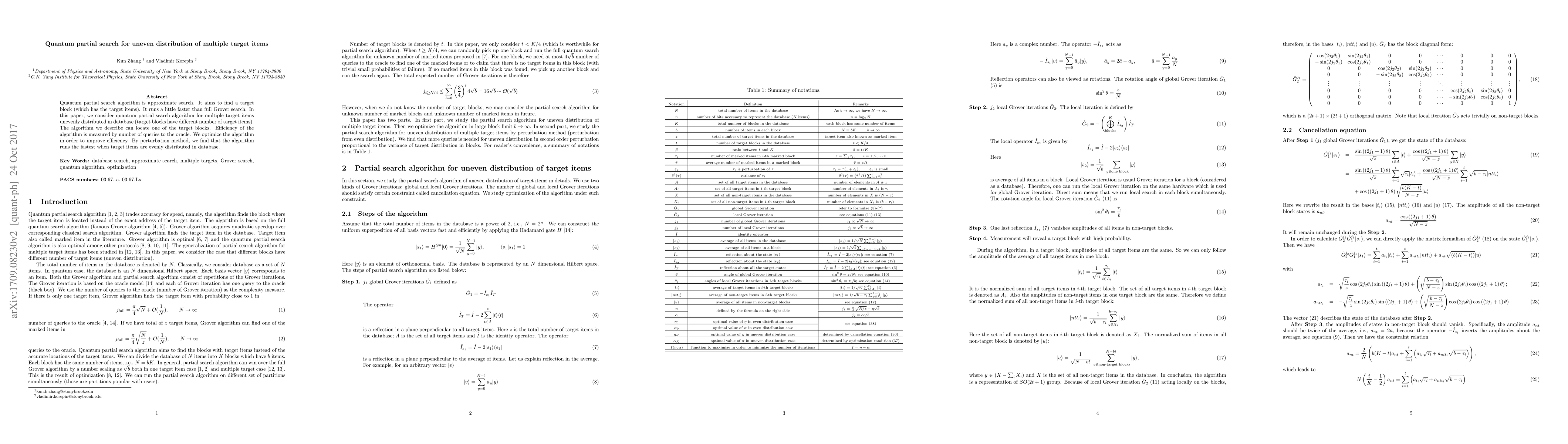 The research employs a quantum partial search algorithm for multiple target items unevenly distributed in a database, optimizing the algorithm through perturbation analysis.