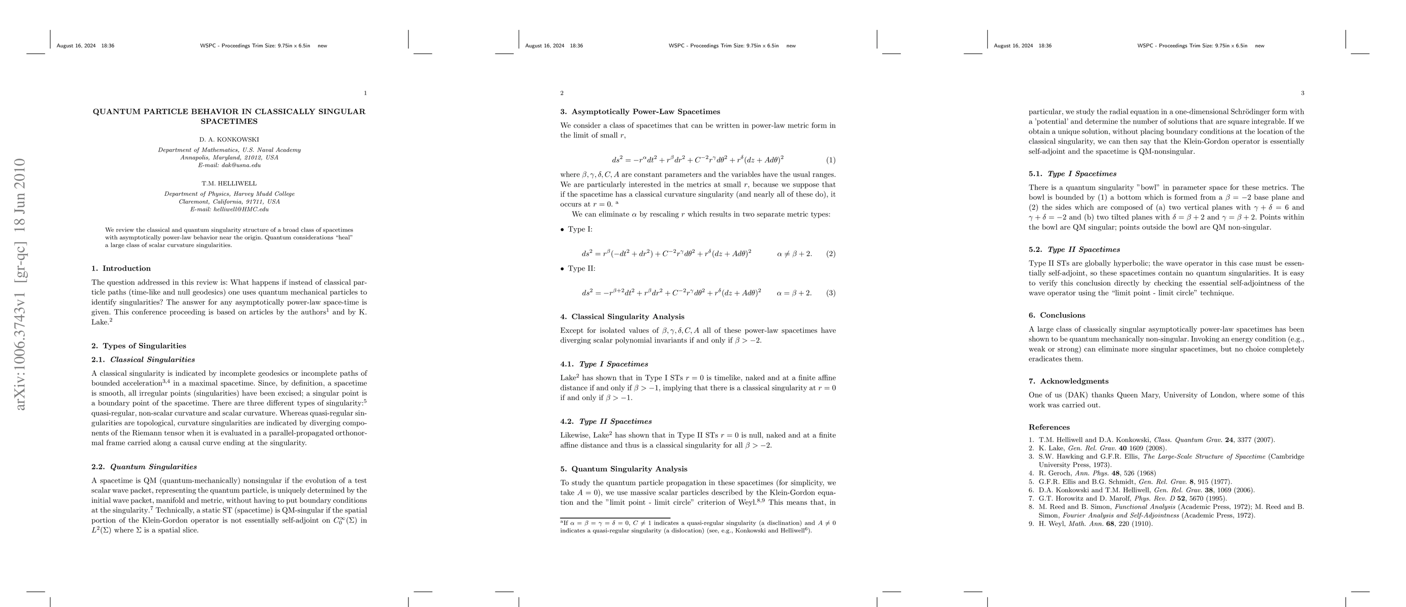 We review the classical and quantum singularity structure of a broad class of spacetimes with asymptotically power-law behavior near the origin. Quantum considerations "heal" a large class of scalar curvature singularities.
