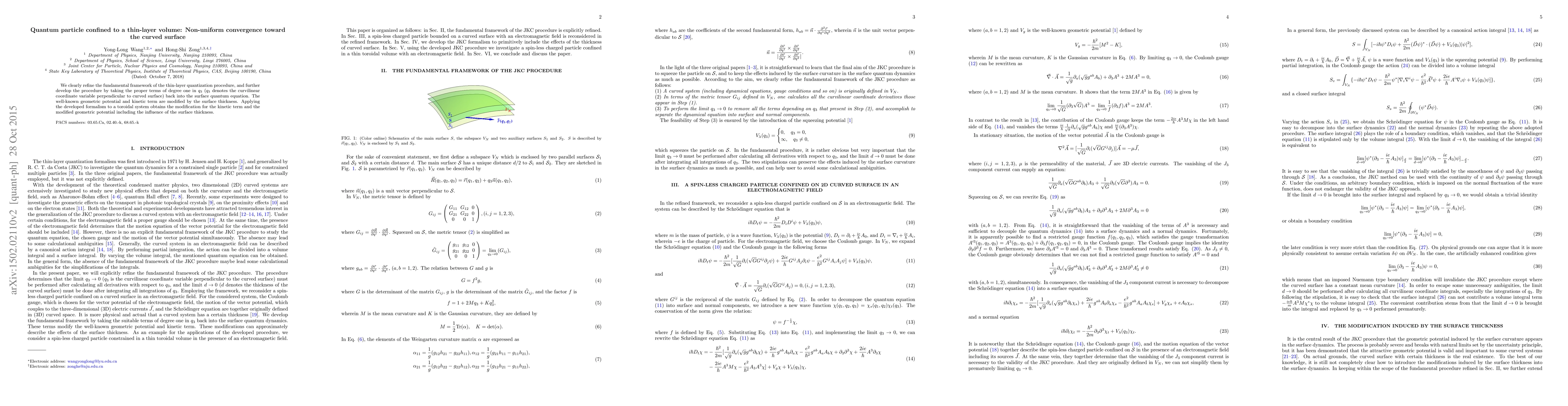 We clearly refine the fundamental framework of the thin-layer quantization procedure, and further develop the procedure by taking the proper terms of degree one in $q_3$ ($q_3$ denotes the curvilinear coordinate variable perpendicular to curved surface) back into the surface quantum equation. The well-known geometric potential and kinetic term are modified by the surface thickness. Applying the developed formalism to a toroidal system obtains the modification for the kinetic term and the modified geometric potential including the influence of the surface thickness.